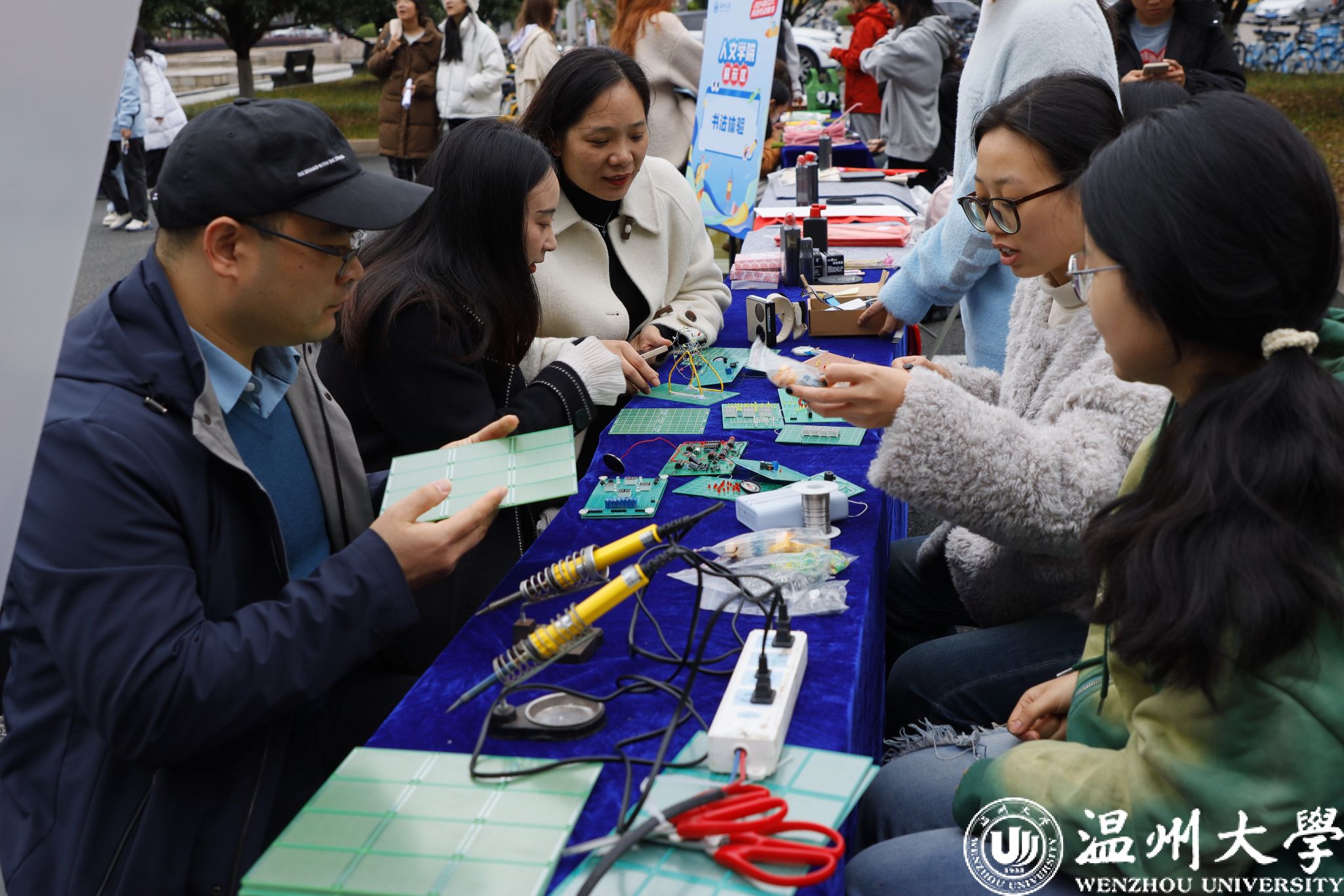 师生共同参与,吸引众多师生驻足体验,展现出科技与生活紧密结合的创新理念。