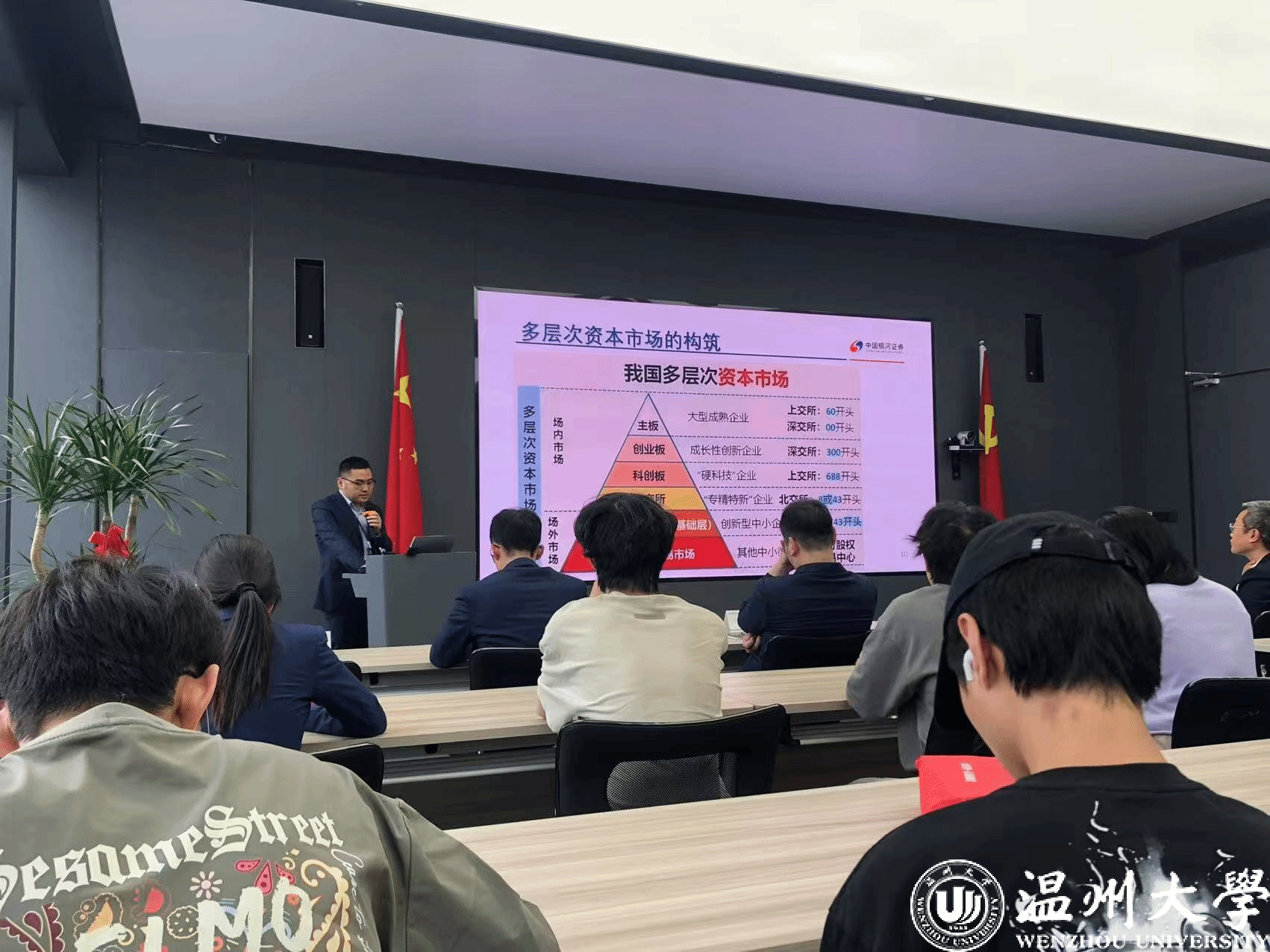 在对中国金融市场的概述环节,银河证券的资深分析师厉云海结合当前宏观经济形势,深入浅出地分析了金融市场的运行机制、主要金融产品以及投资策略。分析师指出,中国金融市场在不断改革和开放的过程中,正逐步走向成熟和规范,为投资者提供了更多的机会和选择。但同时,市场也充满了不确定性和风险,需要投资者具备扎实的专业知识和敏锐的市场洞察力。最后为同学们推荐了《周期》、《逆向投资》、《投资最重要的事》等书籍。