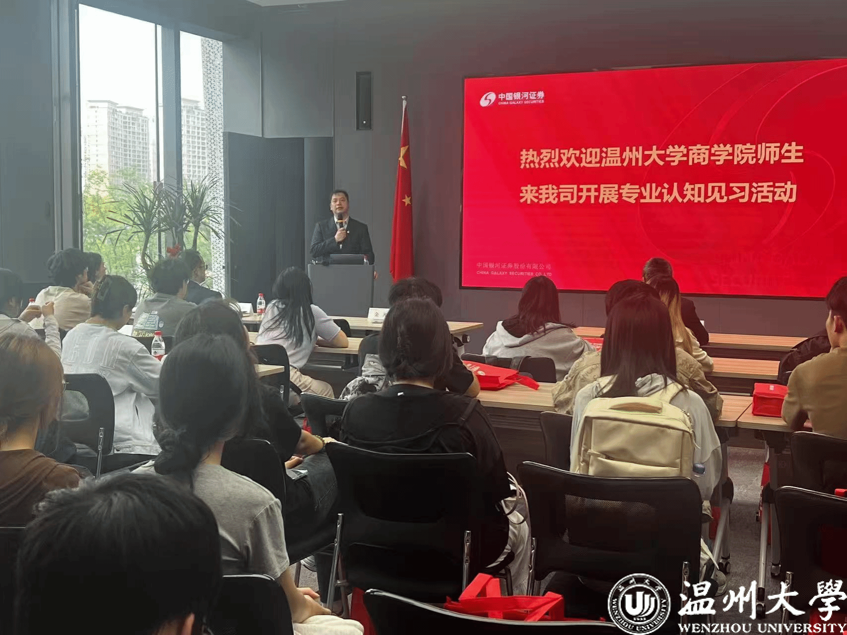 金融工程专业的同学们在金融工程系主任林德根老师的带领下,走进中国银河证券股份有限公司温州三友路证券营业部,开展了一场别开生面的认知见习活动。此次活动旨在让学生们深入了解金融行业,拓宽专业视野,增强对金融市场的感性认识。
