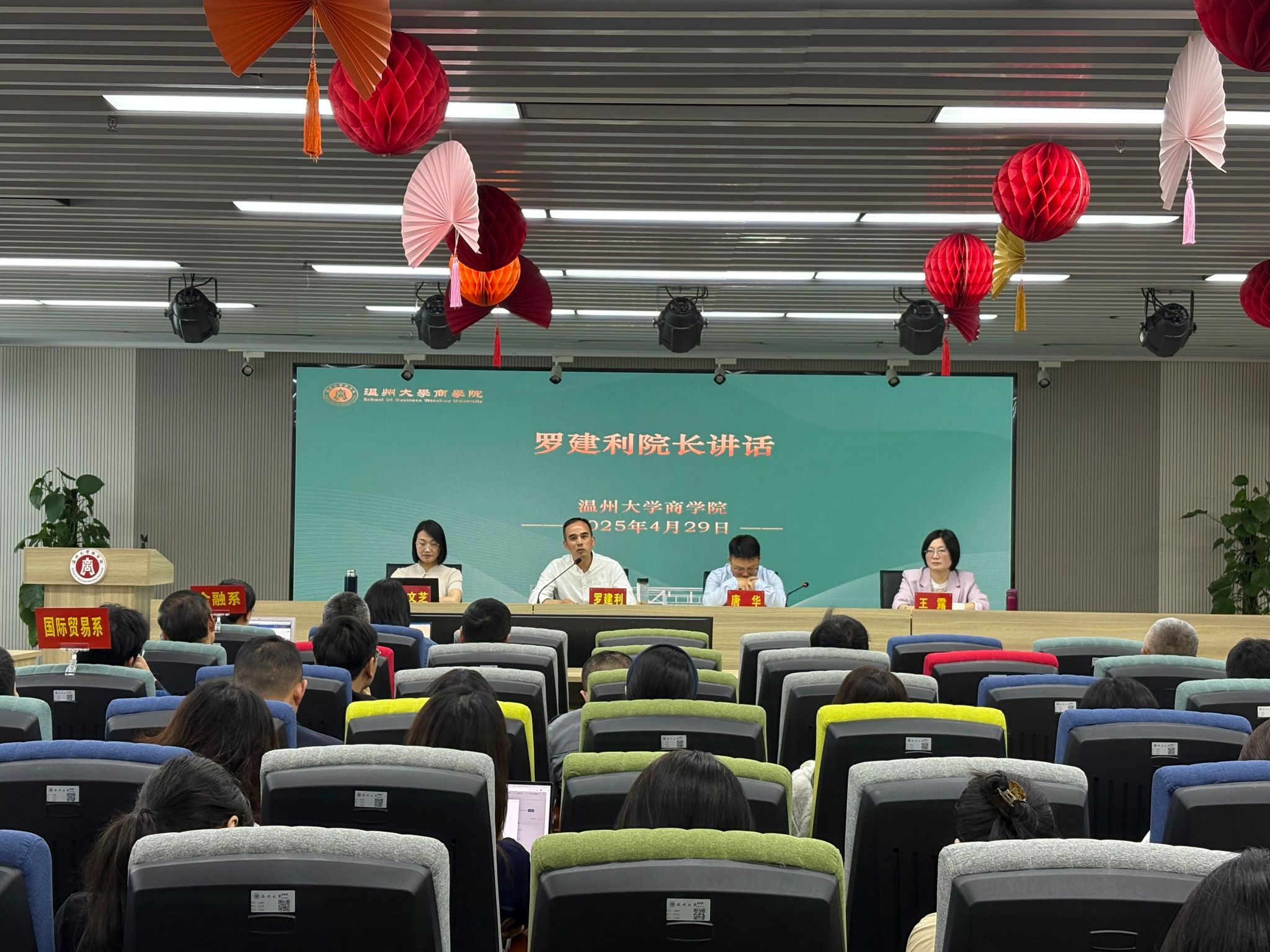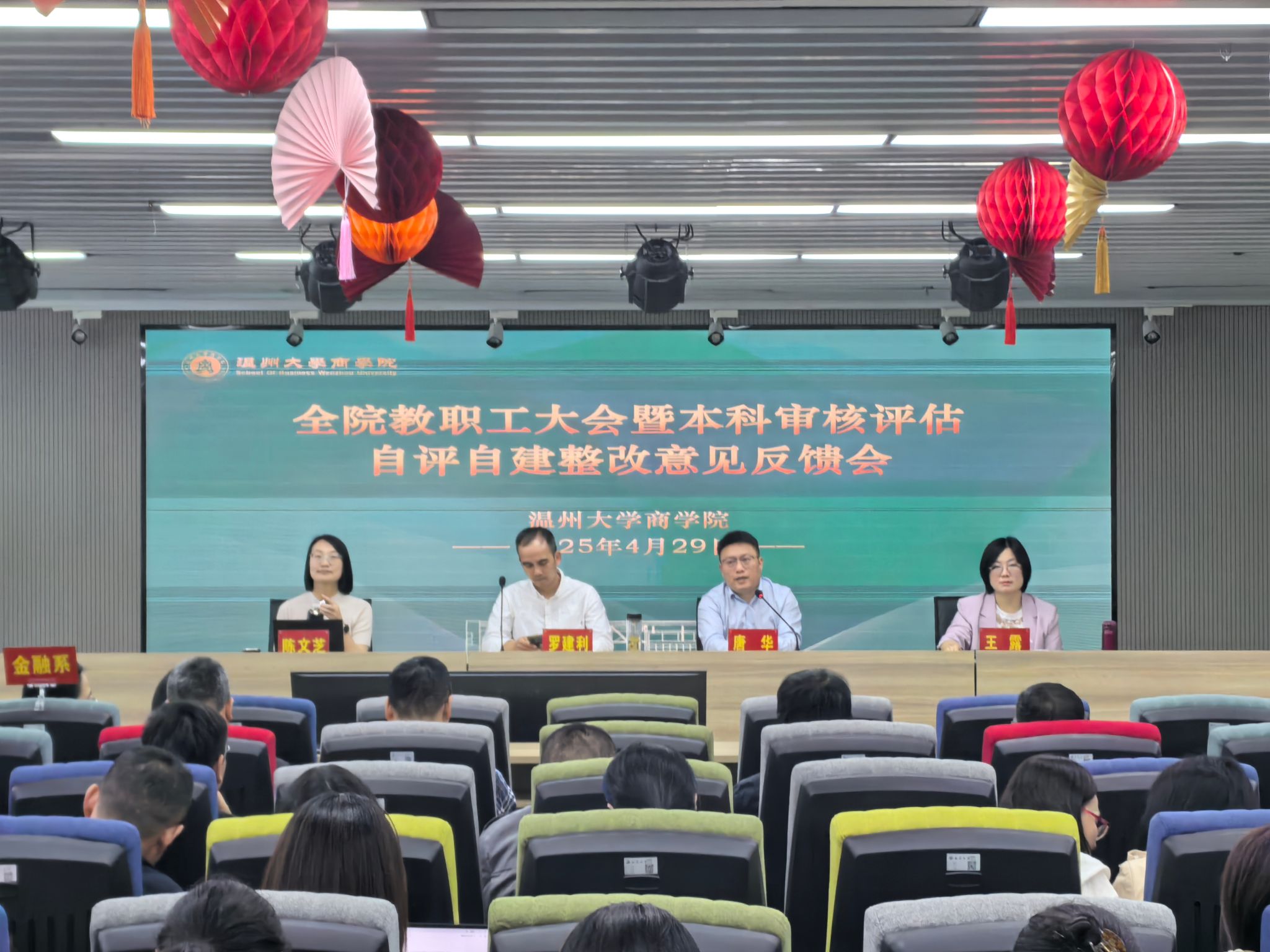 在商院楼A226仲辉商道讲堂举行全院教职工大会暨本科审核评估自评自建整改意见反馈会,会议由51暗网