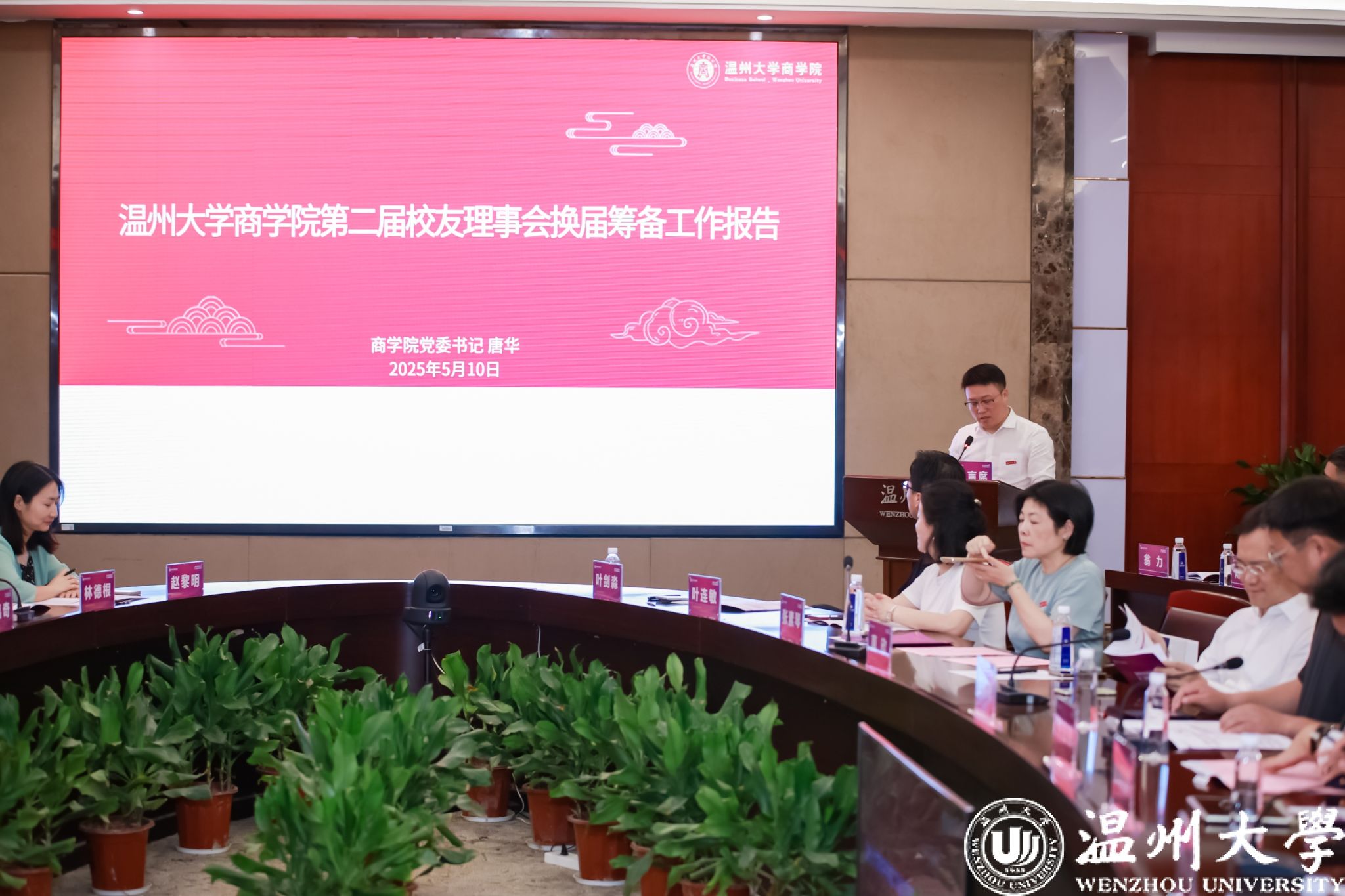 校友会第一届理事会会长王仲辉作工作报告。回顾历年成果:自2016年成立以来,校友会始终秉持“服务校友、服务母校、服务社会”宗旨,在三大领域取得显著成效:一是深化校企合作,推动专业建设,促成校友企业设立实习基地,聘请校友担任校外硕导;二是助力人才培养,举办50余场校友活动,设立10项校友基金,捐赠超百万元,惠及500余名师生;三是强化校友服务,建立15000人校友数据库,打造“名企游学”品牌活动,各地分会开展常态化交流。