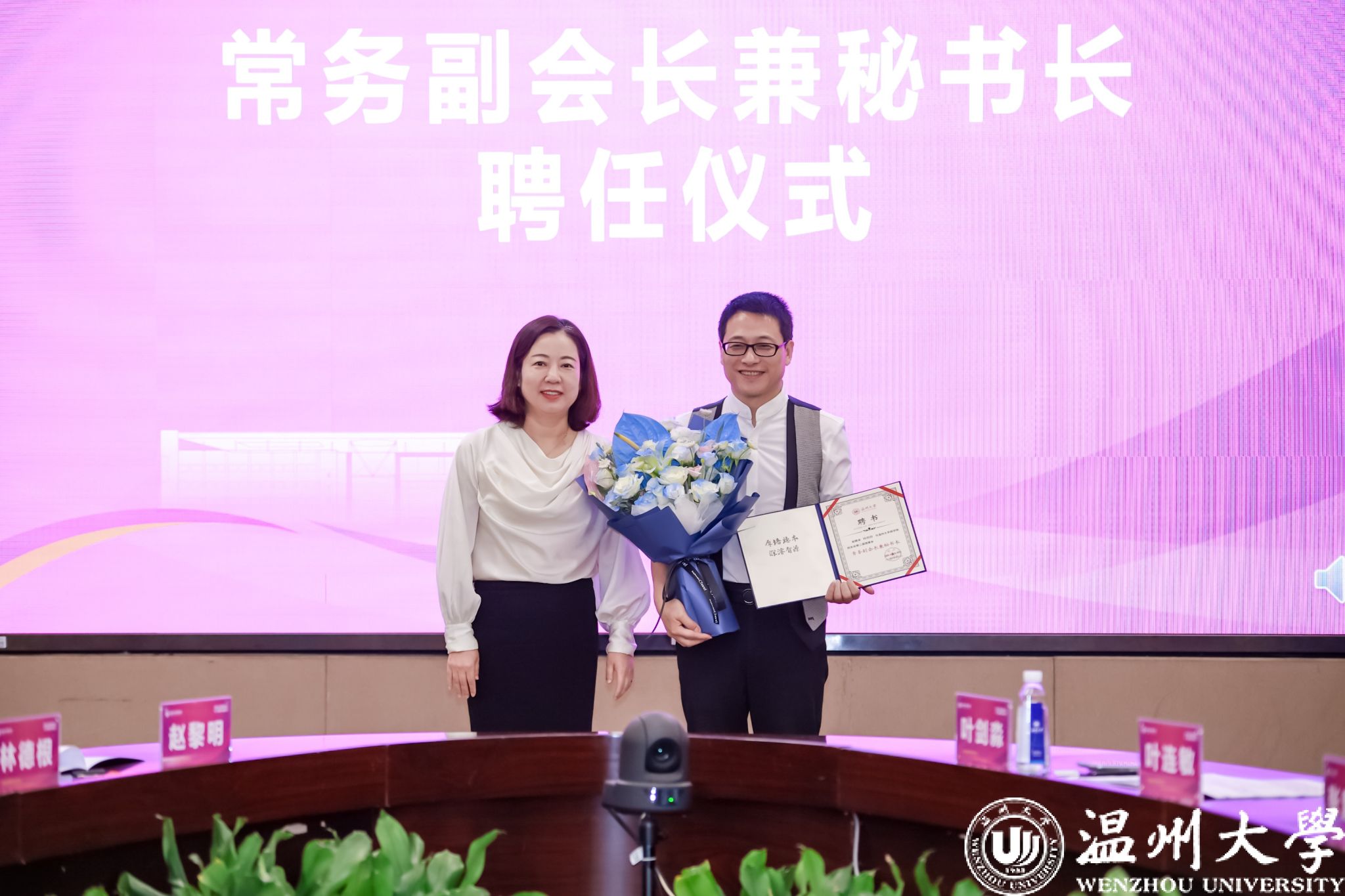 唐华书记为副秘书长陈金星、缪克昌颁发聘书。