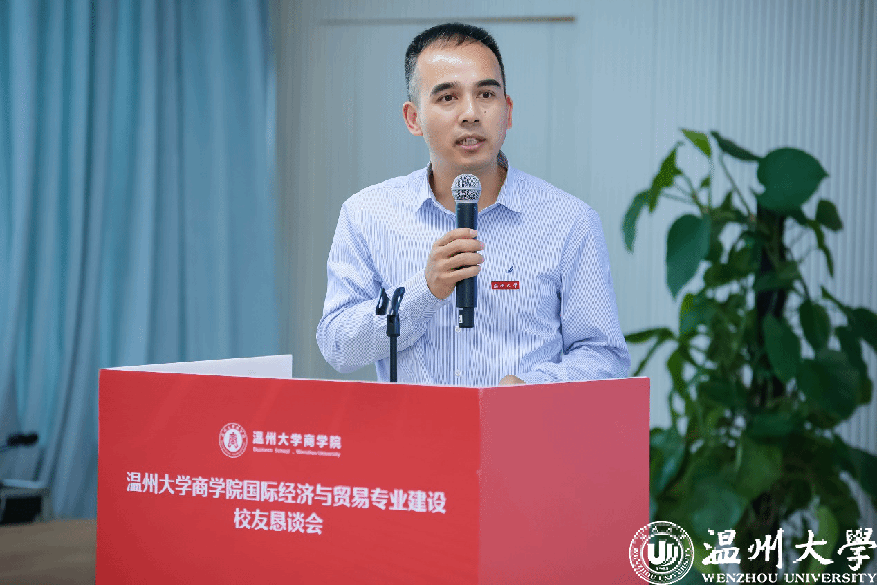 党委副书记庄兴忠、浙江省商务厅综合发展处处长杨颖俊、温州市商务局副局长林松青,鹿城区商务局、瓯海区商务局、温州市外贸协会、温州市跨境电子商务协会、鹿城区跨境电子商务协会等商协会领导,国贸系老教师代表盛培林、朱晓申、戴静,老领导代表胡振华,40余位各届国贸校友,全体班子成员、国贸系全体教师、在校国贸班班长等共计120余人参会。