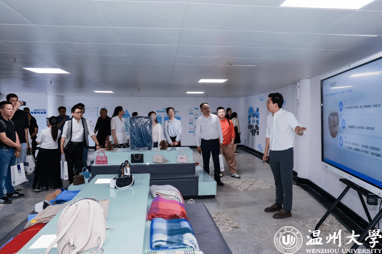校区)和温州市数字贸易研究院提供人才培养和行业智库支持,创业园也是国贸专业办学40周年赋能外贸行业发展的成果展现。园区负责人向来访嘉宾就园区运营模式、建设思路、展品陈列等做了详细介绍。