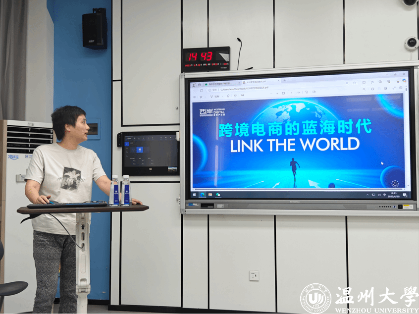 讲座伊始,叶小鹏以温州商贸发展史为切入点,指出温州虽拥有深厚的工贸传统,却曾错过国内电商红利期。如今,跨境电商成为新蓝海,为区域产业升级注入全新动力。他援引数据强调:“全球互联网普及率持续攀升,跨境包裹量激增,为企业转型指明方向,更为学习跨境运营、国际贸易的学子开辟就业新通道——紧跟区域产业升级,职业机遇无限。”