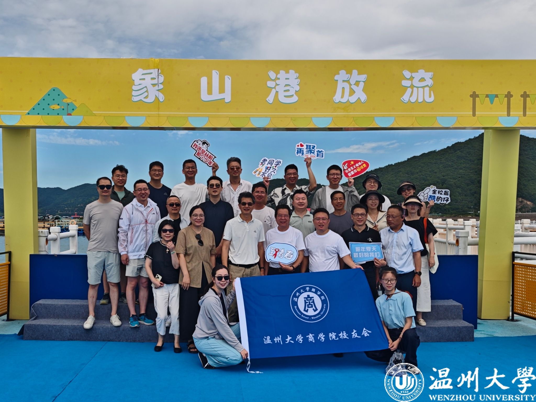 随后,校友们集体参与滩涂运动会和黄避岙海上平台放鱼活动,通过近距离交流,在了解象山文旅发展的同时深化了同窗情谊。