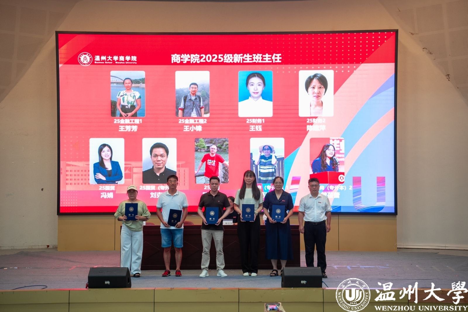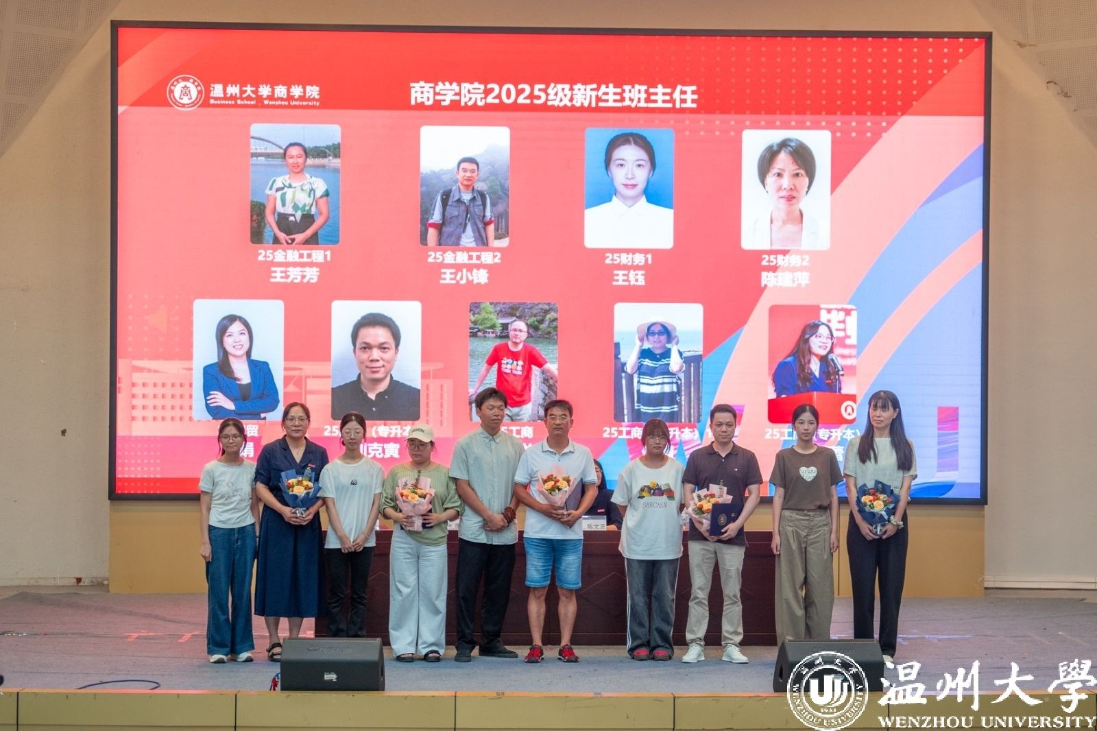聘任9位老师作为本科新生班级的班主任,唐华书记为班主任老师们颁发聘书。学生代表满怀敬意向班主任老师献花并合影留念。