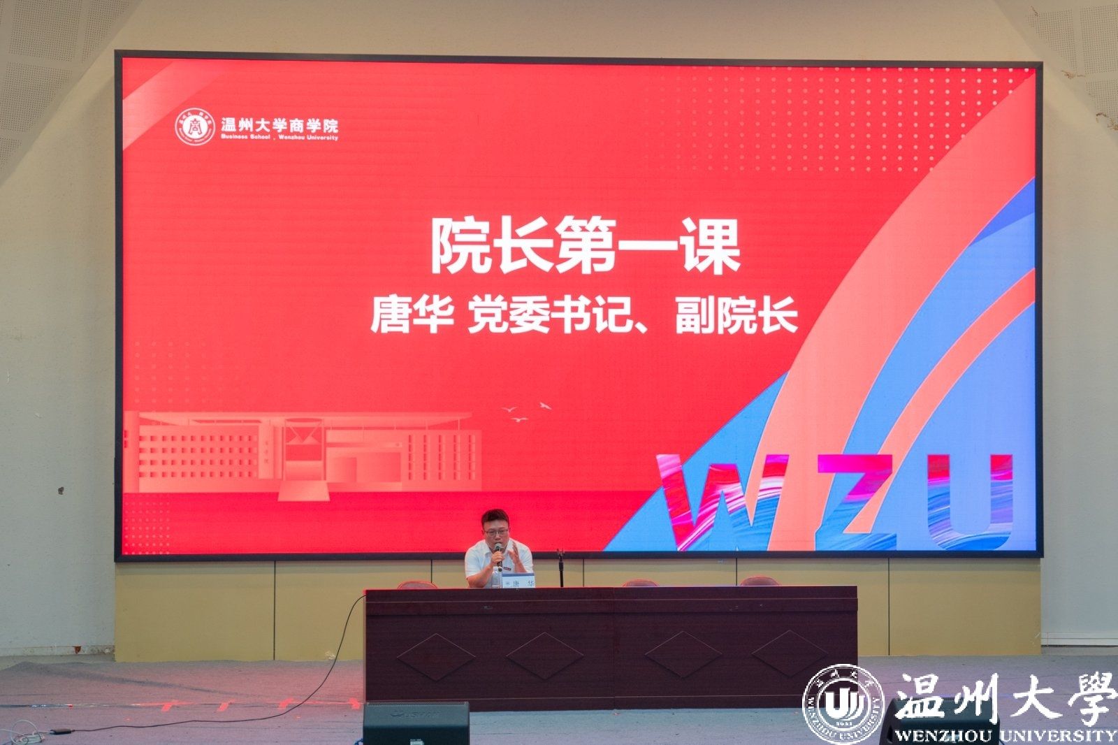 党委书记唐华隆重开讲。唐书记以“立足温州,放眼全球——新时代商科生的使命与机遇”为主题,为全体新生带来了一场别开生面的市情教育课。他结合温州独特的民营经济发展模式和“敢为人先”的创业精神,深刻阐述了温州作为“创业之城”的深厚底蕴与活力,并鼓励同学们深入理解脚下这片热土,将个人学业规划与地方经济发展战略相结合,夯实专业基础,未来成为推动社会进步的优秀商业人才。