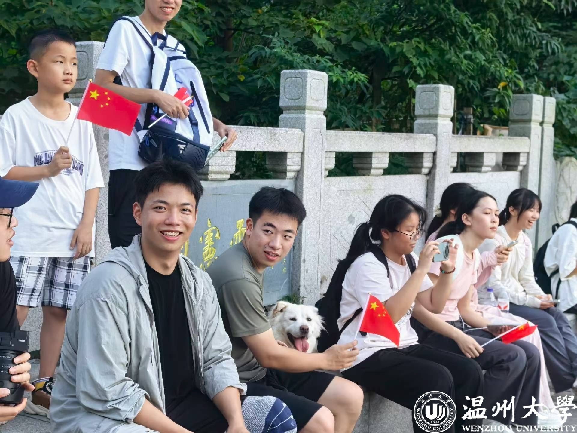 教师为学生们分发月饼。大家也围坐在一起,唱响《强军战歌》等红色歌曲,“听吧,新征程号角吹响,强军目标召唤在前方……”激昂的旋律回荡在山林间。“这是我第一次在温州过中秋,能和退役大学生们、各族同学一起登山赏景、分享月饼,特别有意义!”来自贵州的土家族学生刘同学感慨道。
