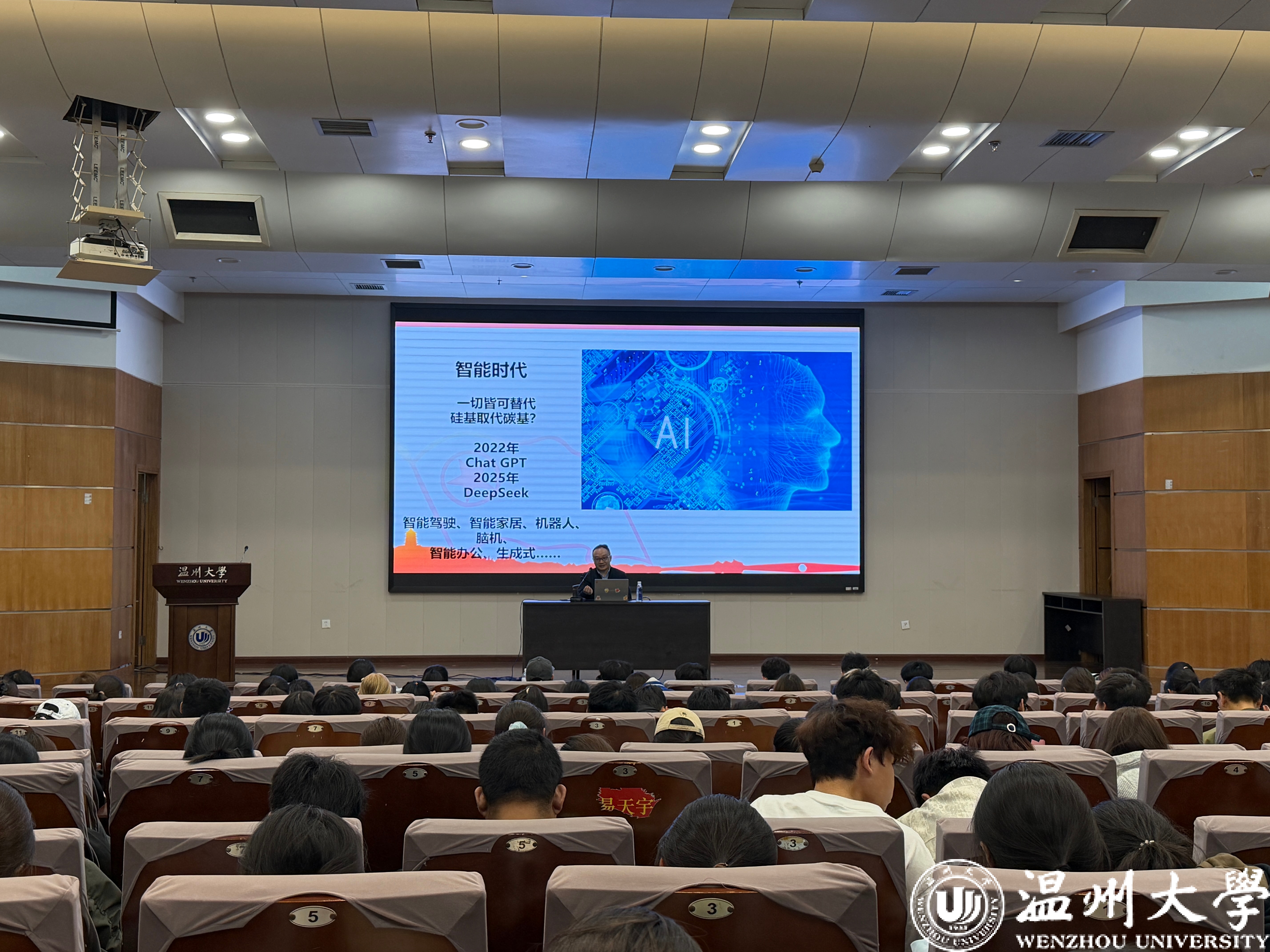 党委副书记丁强老师在北校区信息楼报告厅为2025级新生开展“知网、用网、护网——构建清朗网络空间,做文明时代新人”形势政策专题讲座。