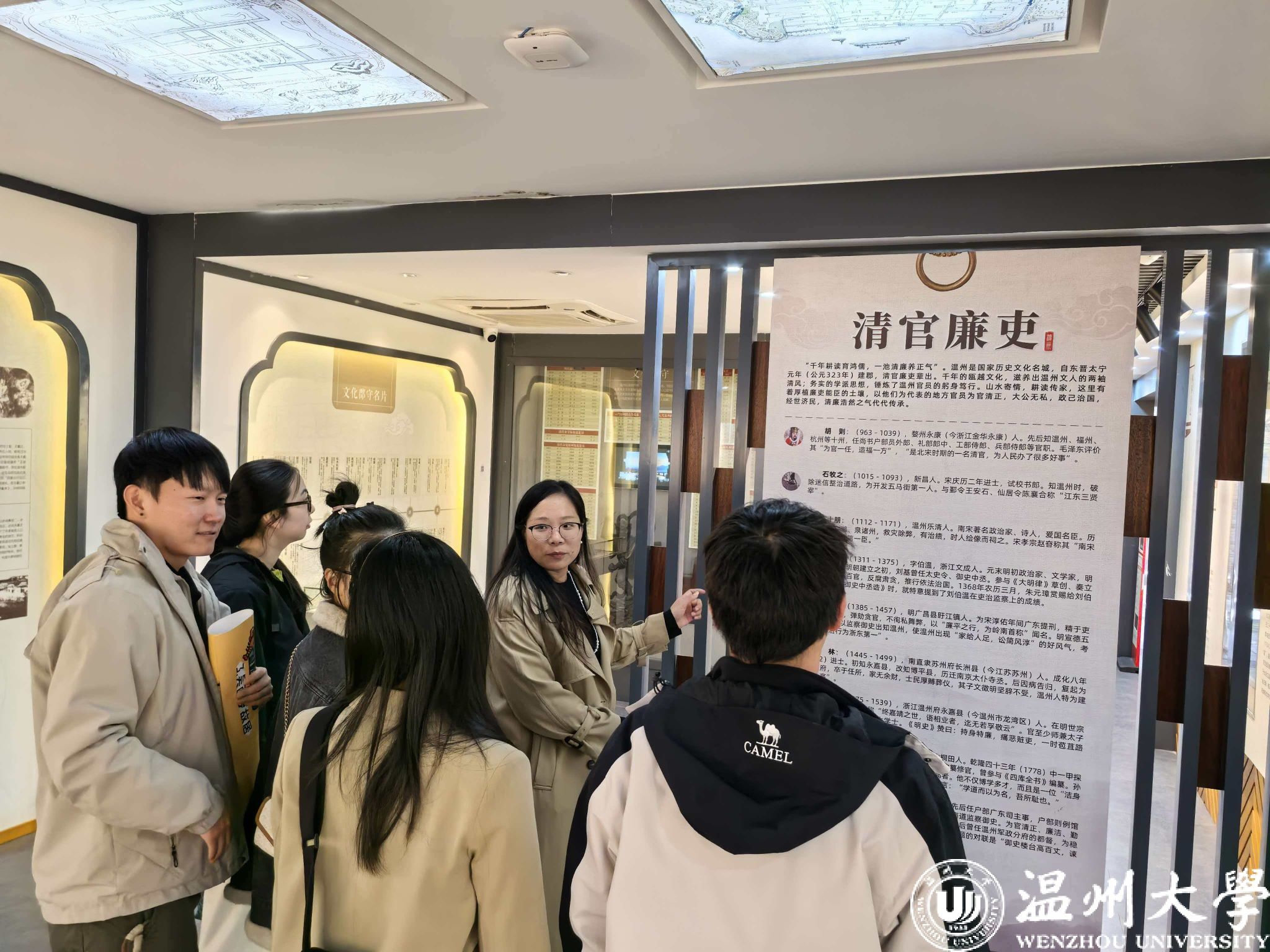 在蝉街的温州科举试院展示馆,师生们了解到清官廉吏辈出的温州城在历史上涌现了如王十朋、刘基、张璁等为代表的地方官员,他们为官清正,大公无私,展现了温州文人的两袖清风和躬身笃行。