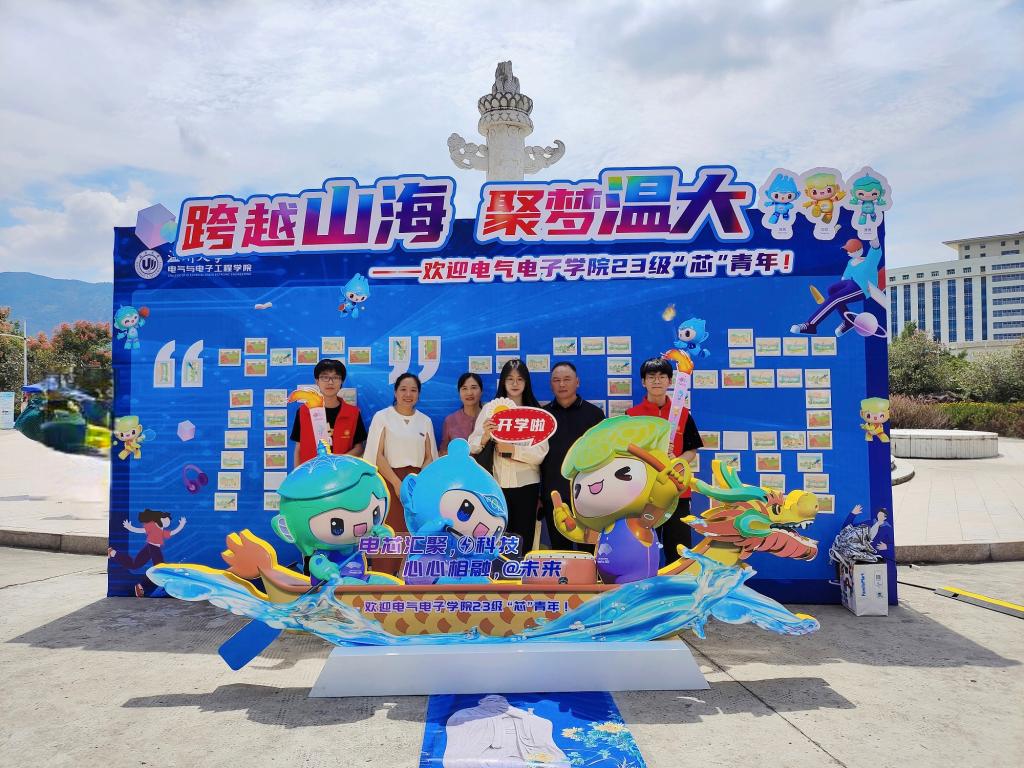 培养新时代科技创新人才的方向不谋而合;而特别定制的龙舟造型,呼应了温州作为第19届杭州亚运会龙舟主场地,展示了温州中国龙舟文化之乡的深厚底蕴。昂首向前的龙舟上载着杭州亚运会的吉祥物琮琮、宸宸、莲莲,他们蓄势待发,寓意着青年学子朝气勃勃、精神焕发。