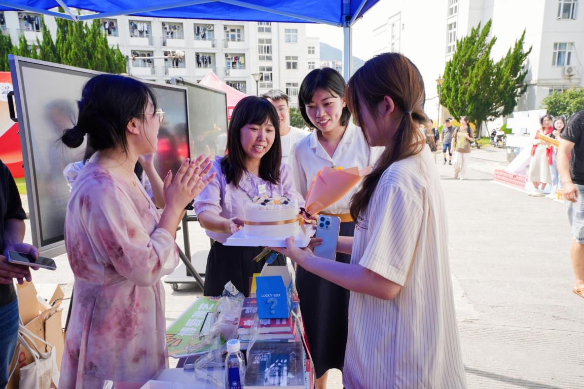 设计专属生日盲盒,里面装满了蛋糕和鲜花,给当天过生日的寿星和校庆日寿星送去最温暖的祝福和惊喜。“有些‘社死’,但是这是我最最难忘的一个生日。”一位同学打趣说。