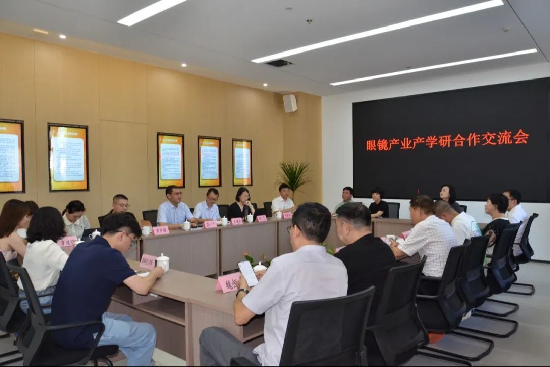 教授张一力为核心,积极对接走访省级眼镜产业创新服务综合体、瓯海眼镜小镇建设服务办公室、瓯海区眼镜行业协会等,以利用好本土高校人才优势,推动科技创新与成果转化为研究方向,深入调研交流,探索助推瓯海眼镜行业以“智造+品牌+健康”为路径加速发展。