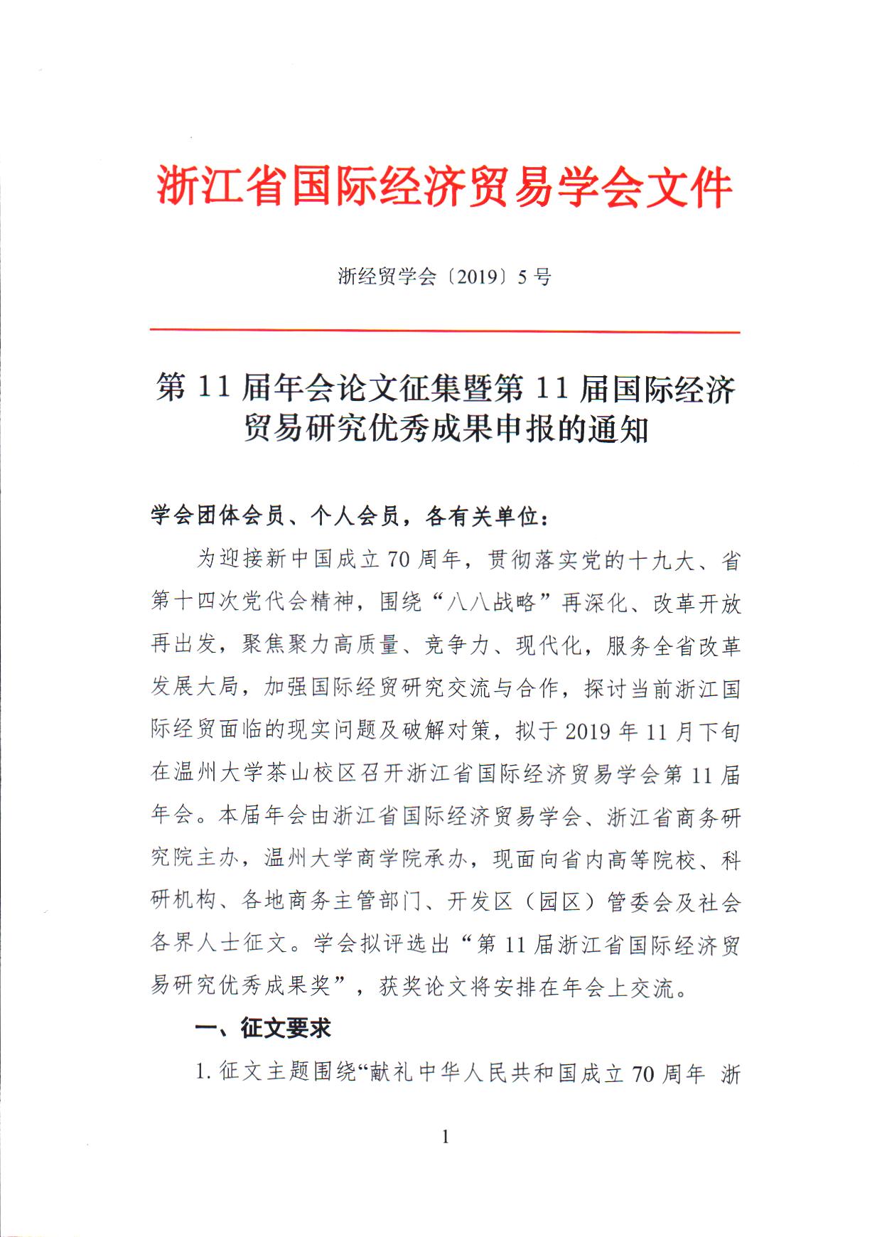 第11届年会论文征集暨第11届国际经济贸易研究优秀成果申报的通知