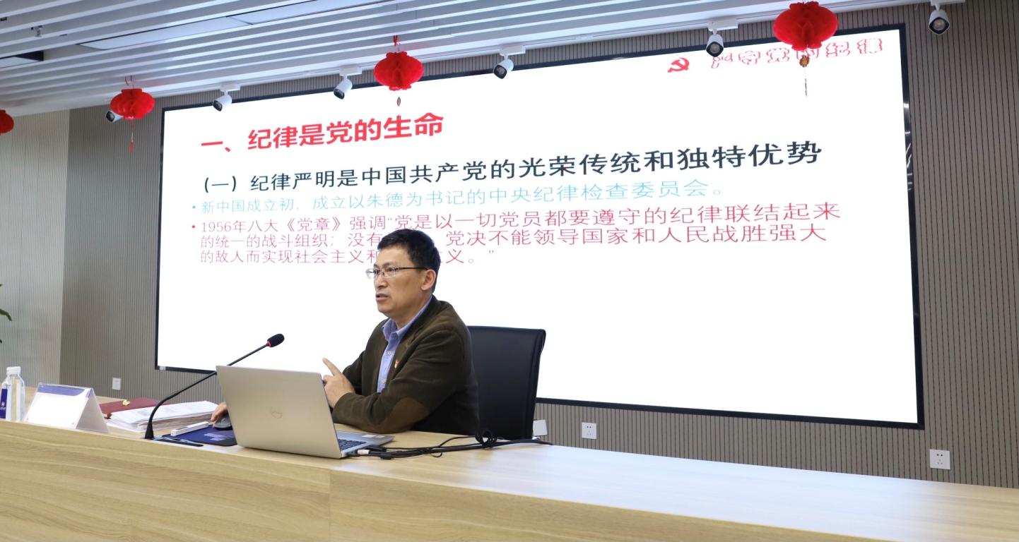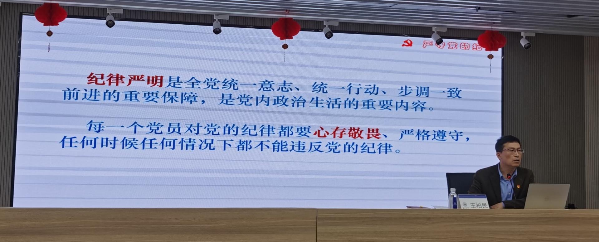党委书记王柏民老师为学员们做《严守党的纪律》主题讲座。王老师以“入党誓词”为切入点,结合鲜活的案例,从纪律是党的生命、党的纪律主要内容以及严守党纪的新特征新要求三个板块做具体的讲解。最后,在讲座结束时,王老师对在座的党员骨干们提出要求:“每一个党员对党的纪律都要心存敬畏、严格遵守,任何时候任何情况下都不能违反党的纪律。”