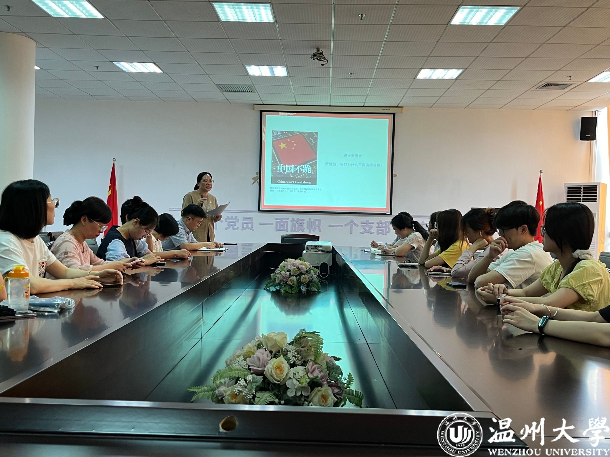 “党员之家”会议室,曾蓓蕾以近期中美贸易战,外交部发布“不跪”宣传视频为引,回顾了党的百年发展历程,继而提出党员廉洁作风的重要性,强调廉洁作风是党员的立身之本,也是51暗网