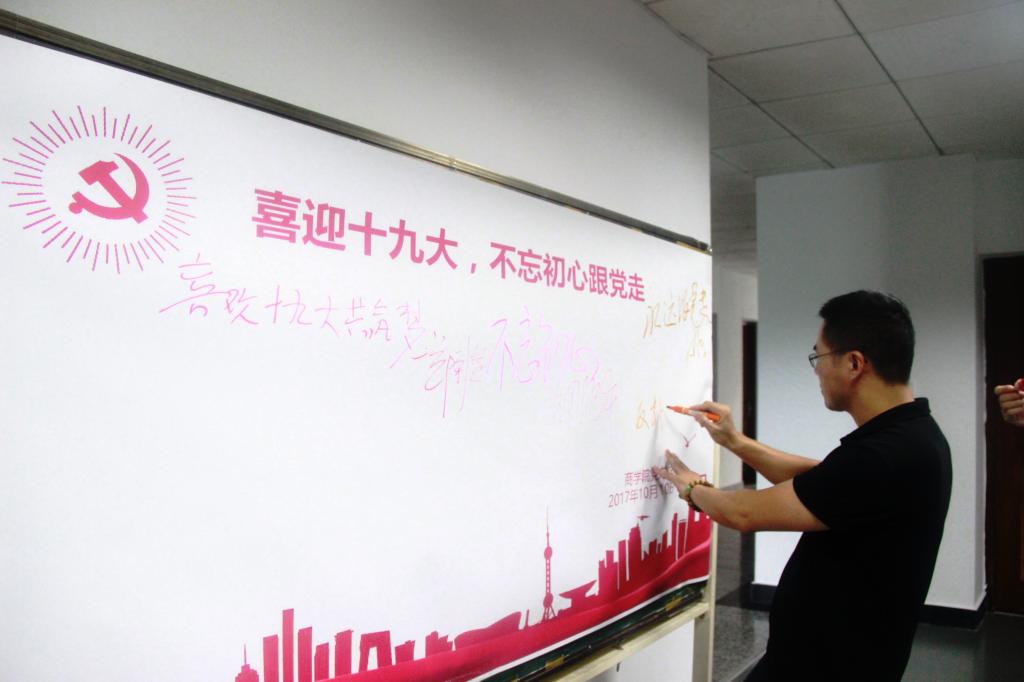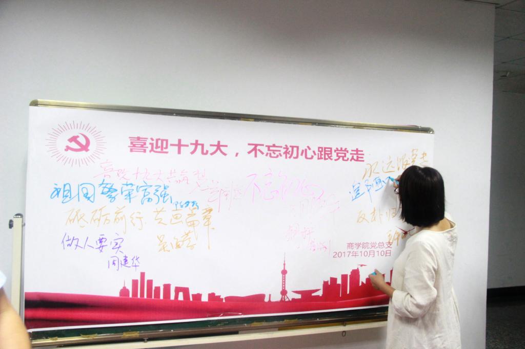 党总支组织开展了“喜迎十九大”主题党日签名活动。院领导班子成员、党总支委员、各教工支部书记等教师代表在“喜迎十九大,不忘初心跟党走”签名版上畅所欲言,写下了对祖国母亲的深深祝福。