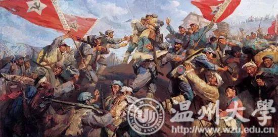 这是用油画表现的毛泽东率领中国工农红军走过长征的万水千山。