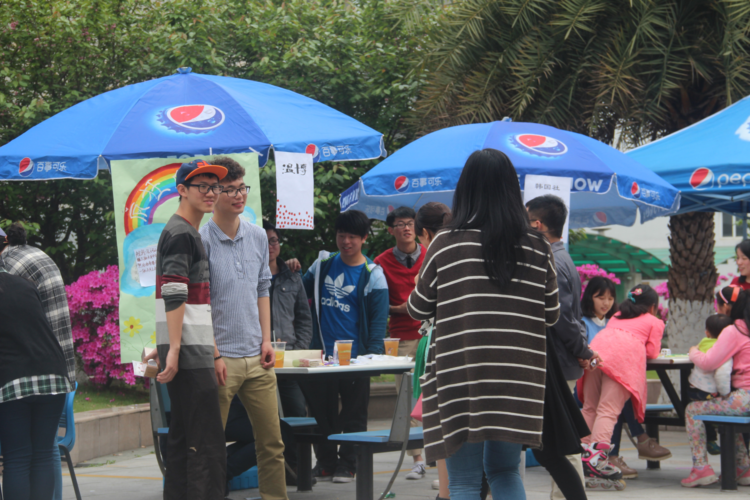 开放日在C区凉亭火热展开。当十个社团的基地刚刚搭起,便吸引了许多同学前来围观。
