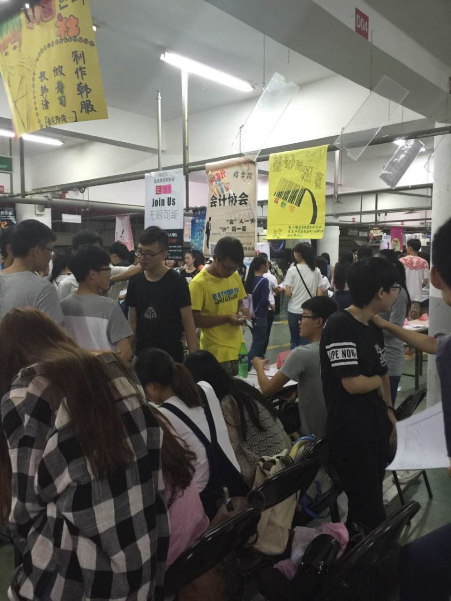 众多校级、院级社团让同学们目不暇接,而商院的特色优质协会如ACDR就业协会、韩国社、会计协会等收到了同学们的热烈欢迎。招新现场热火朝天,一张张宣传单富有创意,一幅幅海报五彩斑斓,学长学姐的介绍热情洋溢,随处可见同学们填表的身影。在社团部的组织带领,现场工作人员的负责引导以及同学们的热情参与下,社团招新活动有条不紊的进行中。