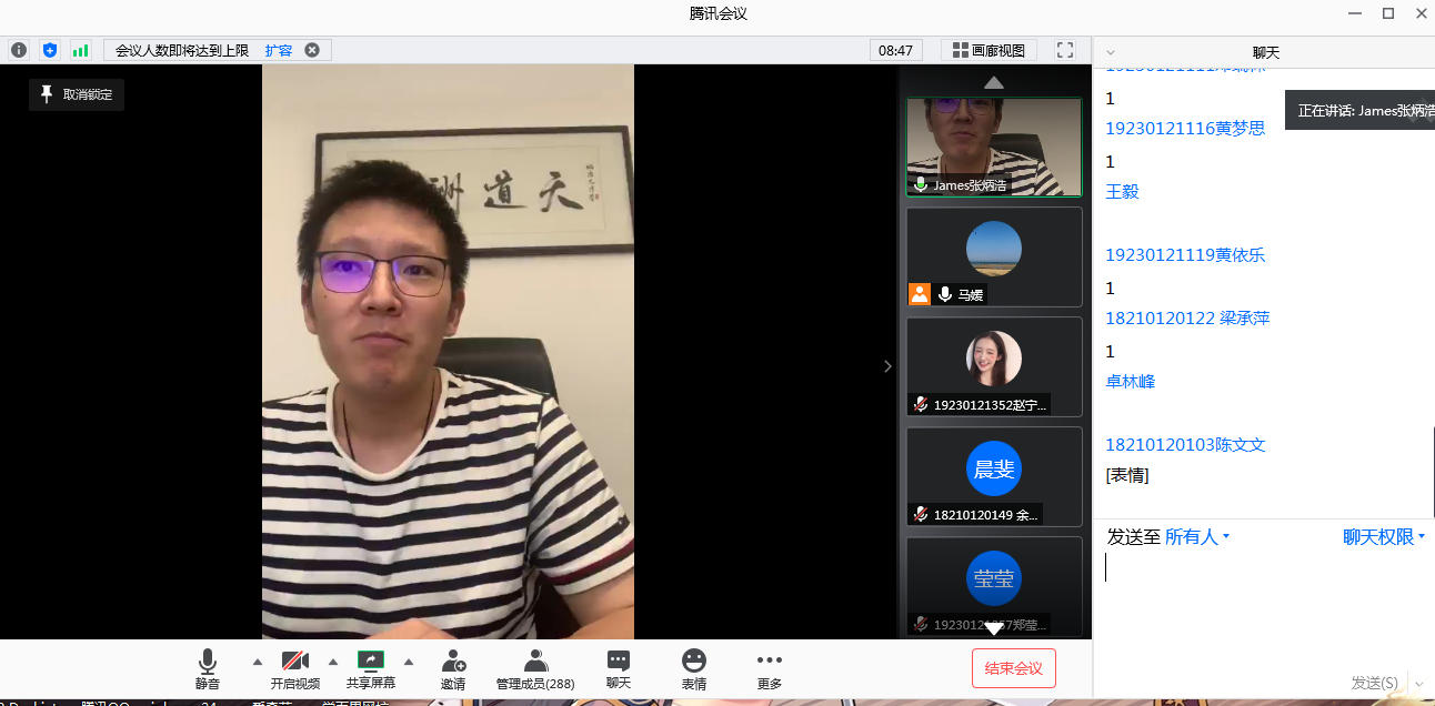 于6月22日晚7点在线上举行了国贸专业优秀校友大讲堂,邀请了2010届国贸系毕业生---温州鼎力国际贸易有限公司总经理张炳浩学长,给大家分享了参展会的经验以及个人的经历体会。
