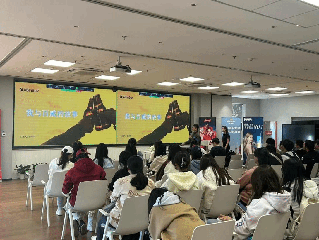 首先,在宣讲会上,百威温台人事经理季罗娅详细为在场同学介绍了百威集团的基本情况以及未来的销售战略,并提出了2025年在农业、水资源、包装、气候上共同实现可持续发展目标的发展前景。之后,季罗娅总经理还向同学们介绍了华东事业部并着重向我们展示了他们的人才项目在百威集团发展的优势,激起了在场同学加入红星项目的兴趣和热情。