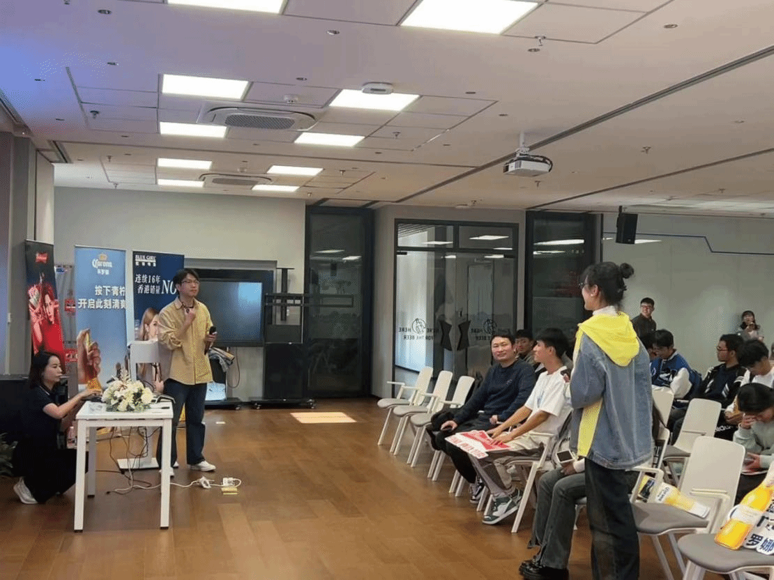 接下来,23红星成员徐靖轩为同学们分享了他与百威的故事。他以23红星特训周以及供应链培训等内容为切入点,让大家感受到红星团结友爱的氛围以及百威红星提供的先进的供应链管理学习系统。“销售不是简单的推销买卖,而是丰富的细节注重与有温度的管理维护!”这也是他向同学们介绍的掌握销售入门的王牌公式。之后,他通过剖析自己的例子,从谈判到陈列,向大家强调细节是决定成败的关键。此外,他还向同学们展示了百威丰富的活动以及优厚的薪资待遇,吸引了众多同学的关注。在紧随其后的提问环节,他为同学们解答了与重点高校学生面试竞争的诀窍,并指出二轮面试最重要的便是“自信”二字。通过他的分享,在座的同学们关于今后的就业面试都受益匪浅。