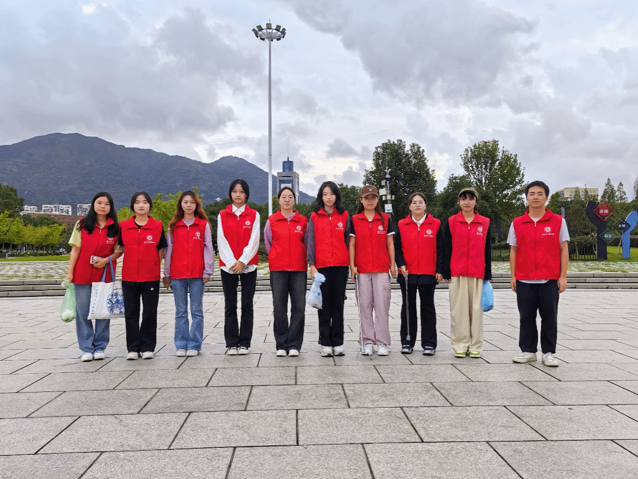 23财务管理一班的同学们在学子广场进行垃圾清扫。