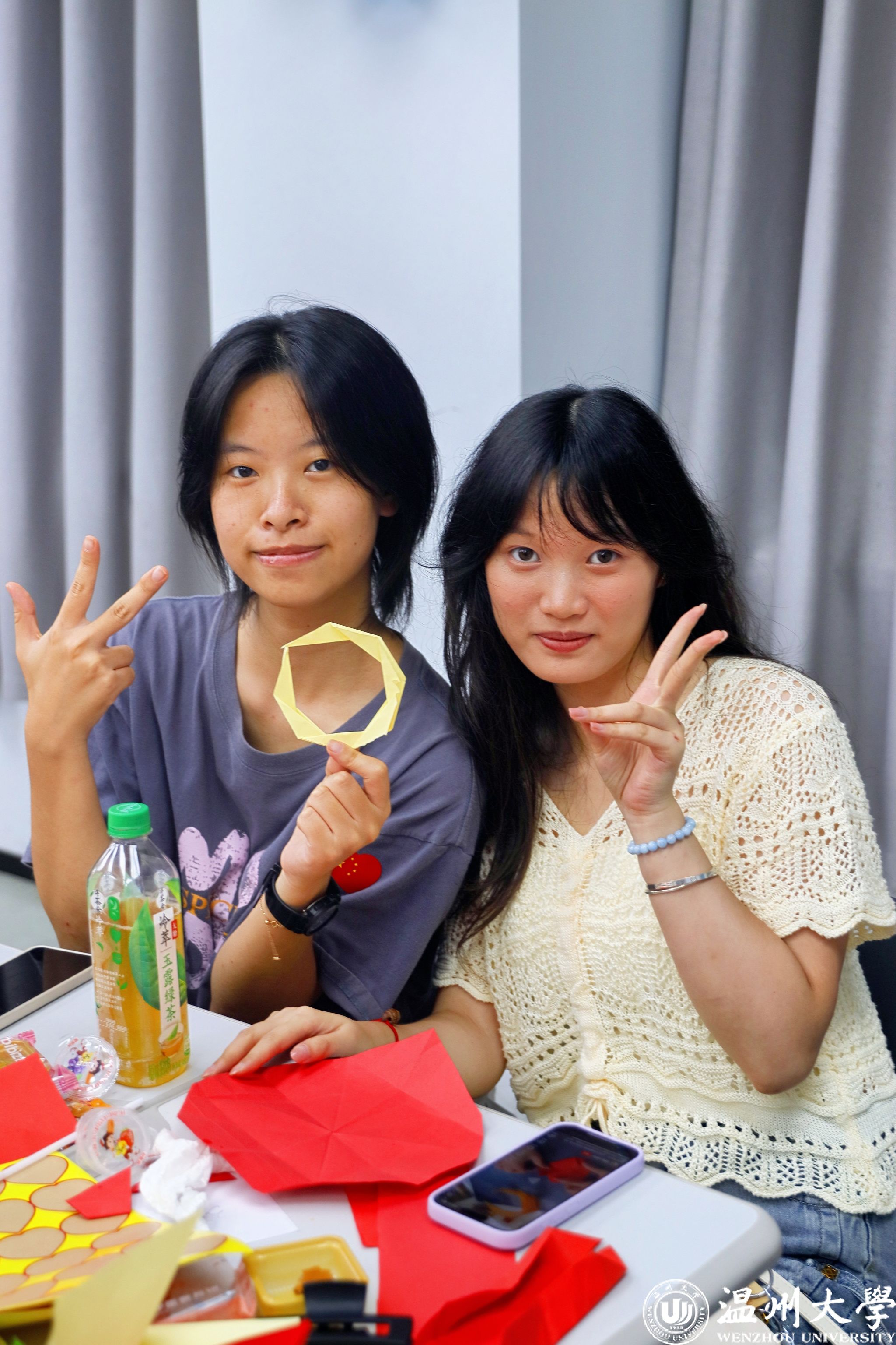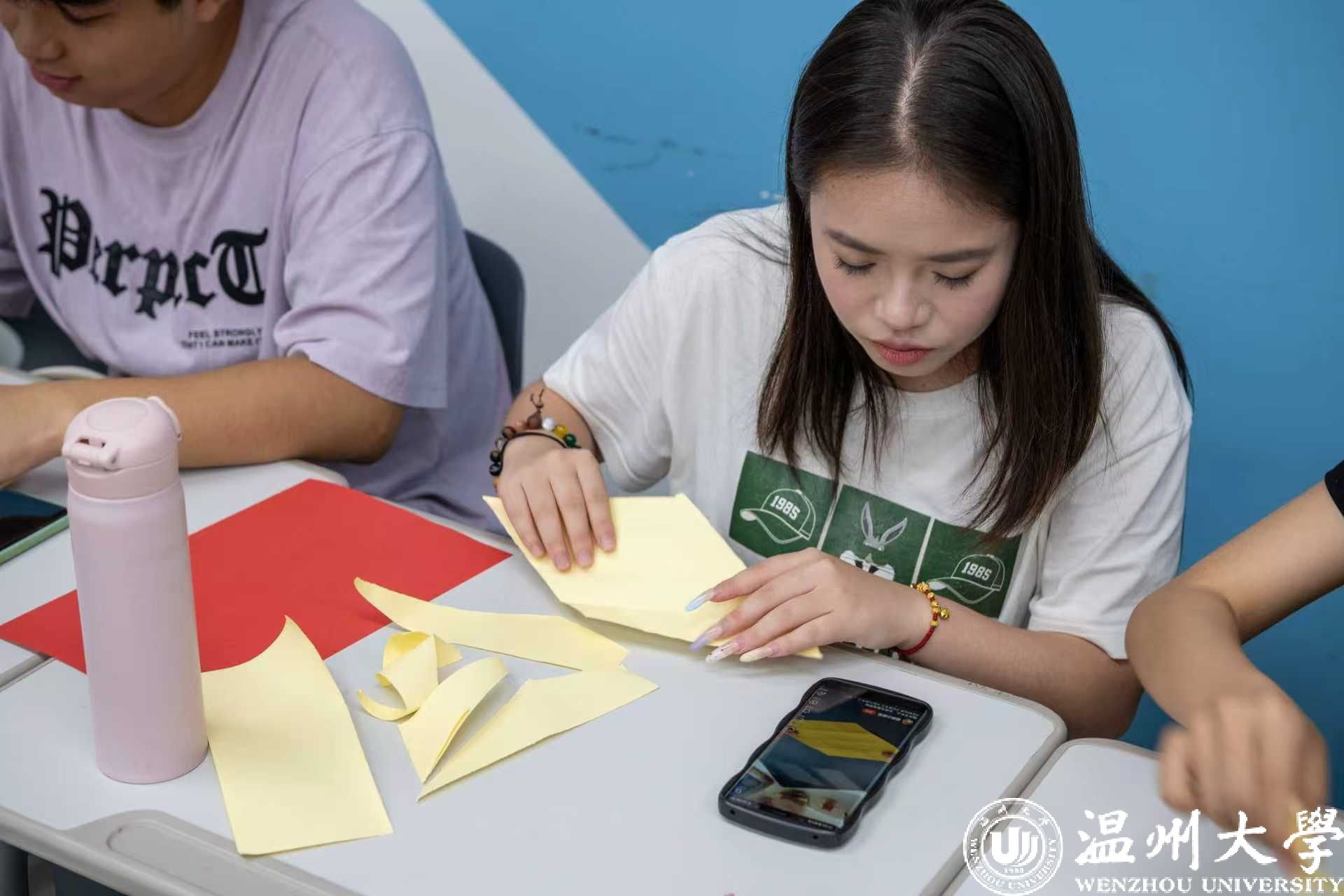 紧接着是“折纸互动”环节,全体成员认真学习操作视频,用巧手折制出象征团圆的纸月亮与代表希望的五角星——纸虽轻,情却重;形虽小,意很深。