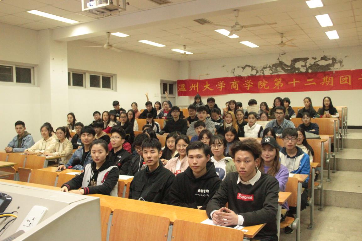 在主持人介绍完到场的嘉宾之后,今天的活动正式进入到唱团歌的环节,在组织部干事张雨楠的带领下,成员们共同完成了团歌的歌唱。紧接着,团副上台致辞,她提出只要心存梦想,并为之奋斗,那你终将有一天会成功的。由蔡才杰同学带领大家回顾本期团干培训,并且一起观看了一段关于各次团干培训的照片和优秀学员团干培训手册的照片,共同回顾了团干培训以来的点点滴滴,令人回味无穷。在颁奖典礼上,李圣洁主席和陆叶平主席共同为15名优秀学员颁发荣誉证书并完成合照。最后来自实践部的干事张超颖同学代表优秀学员,发表了她对团干培训的心得体会,引发众人深思。