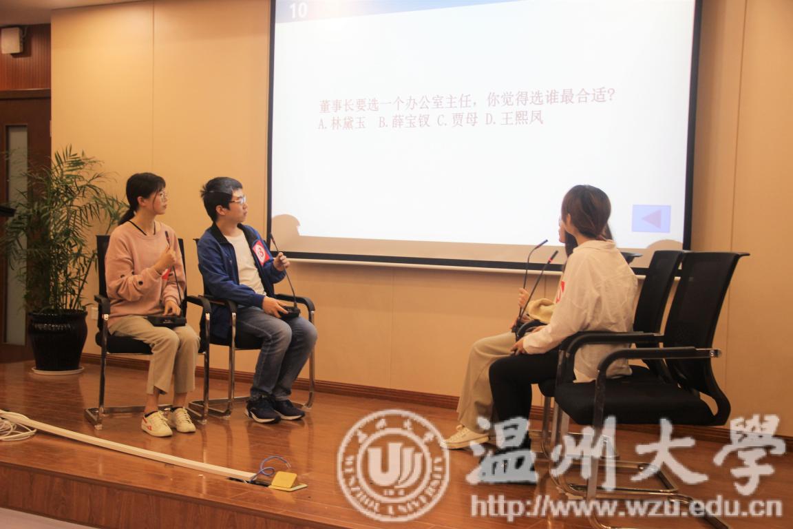经过初赛重重简历的筛选,共有50余名选手脱颖而出,进入复赛。本次比赛采取无领导小组模式,参赛选手抽签后进行分组讨论,最后由各组代表总结观点并回答评委们的问题,简历和无领导小组讨论各占最终成绩的百分之五十。首先参赛选手们围绕创意求职脑洞大开,制作了各式个性独特的简历。紧接着,在场的评委根据各组表现有针对性地抛出问题,选手们沉着冷静,各尽所能,认真答疑。激烈的比拼过后,最终有20名选手成功进入下一阶段比赛。