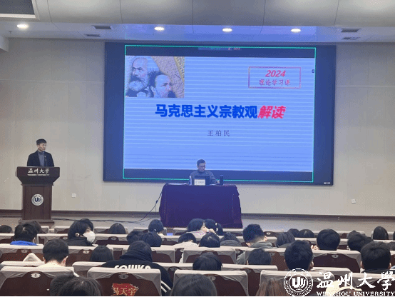 讲座伊始,王柏民老师以世界宗教和中国宗教发展趋势为切入点,通过马克思主义世界观和宗教观,马克思主义宗教观的中国化,新时代党的宗教工作理论和制度三个方面展开叙述,全面深化了大家对马克思主义宗教观的正确认识。除此之外,老师还引用《关于我国社会主义时期宗教问题的基本观点和基本政策》这一文献,表明我们要尊重和保护宗教信仰自由,用马克思主义立场、观点、方法研究宗教问题。