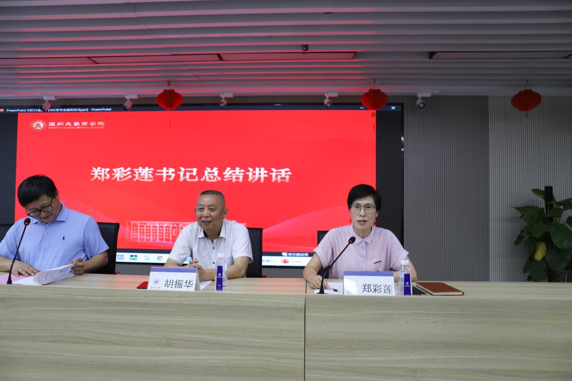 对拔尖人才的重视。她对王仲辉校友进行了新的介绍,感谢王仲辉校友对母校的情怀。郑书记一方面祝贺获奖同学,同时也对同学们提出了两点期望:一是希望同学们能够秉承“求学问是、敢问人先”的校训精神、“尚信明道、勇毅笃行”的院训精神,用青春的肩膀担负起祖国建设的责任。二是希望同学们心怀感恩之心,学习校友身上闪现的珍贵品质,心怀天下,商行天下,优秀的企业家也往往都是慈善家,他们身上的特质精神不是一蹴而就的,而是长期修炼而成的,期望同学们继续努力,做优秀的商院学子。