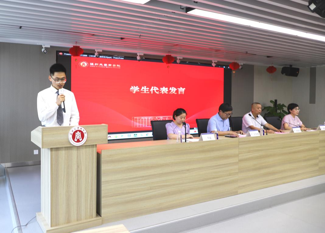 是他人生迈出的第一步,被邀请参加此次颁奖仪式十分的开心。他鼓励获奖的学弟学妹们可以再接再厉。他用梁启超先生的《少年中国说》中的少年智则国智,少年富则国富,少年强则国强勉励商院学子,殷切期望学弟学妹们传承敢为天下先的精神,做对国家、对社会、对他人有用之人。