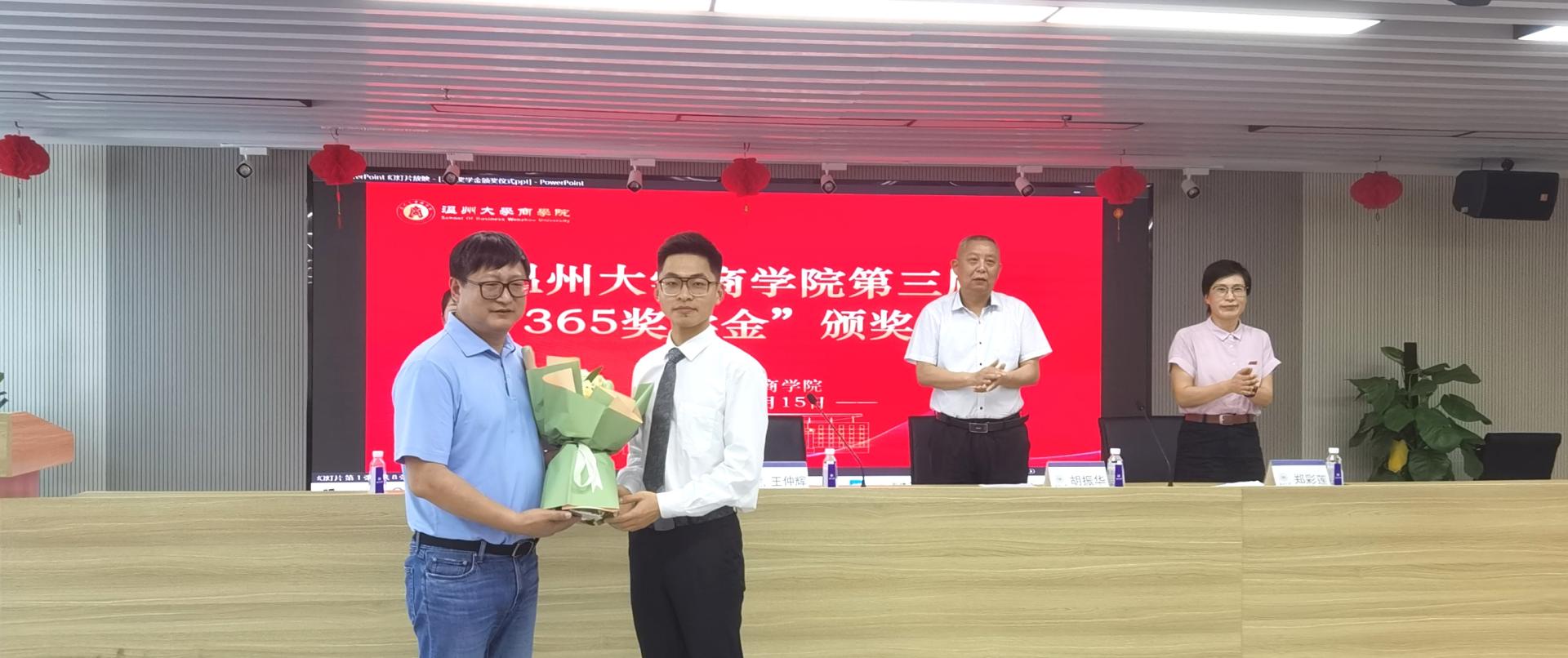 胡振华院长宣读了“365奖学金”获奖名单,共18名同学获奖。随后,王仲辉校友及院领导逐一为获奖同学进行颁奖。