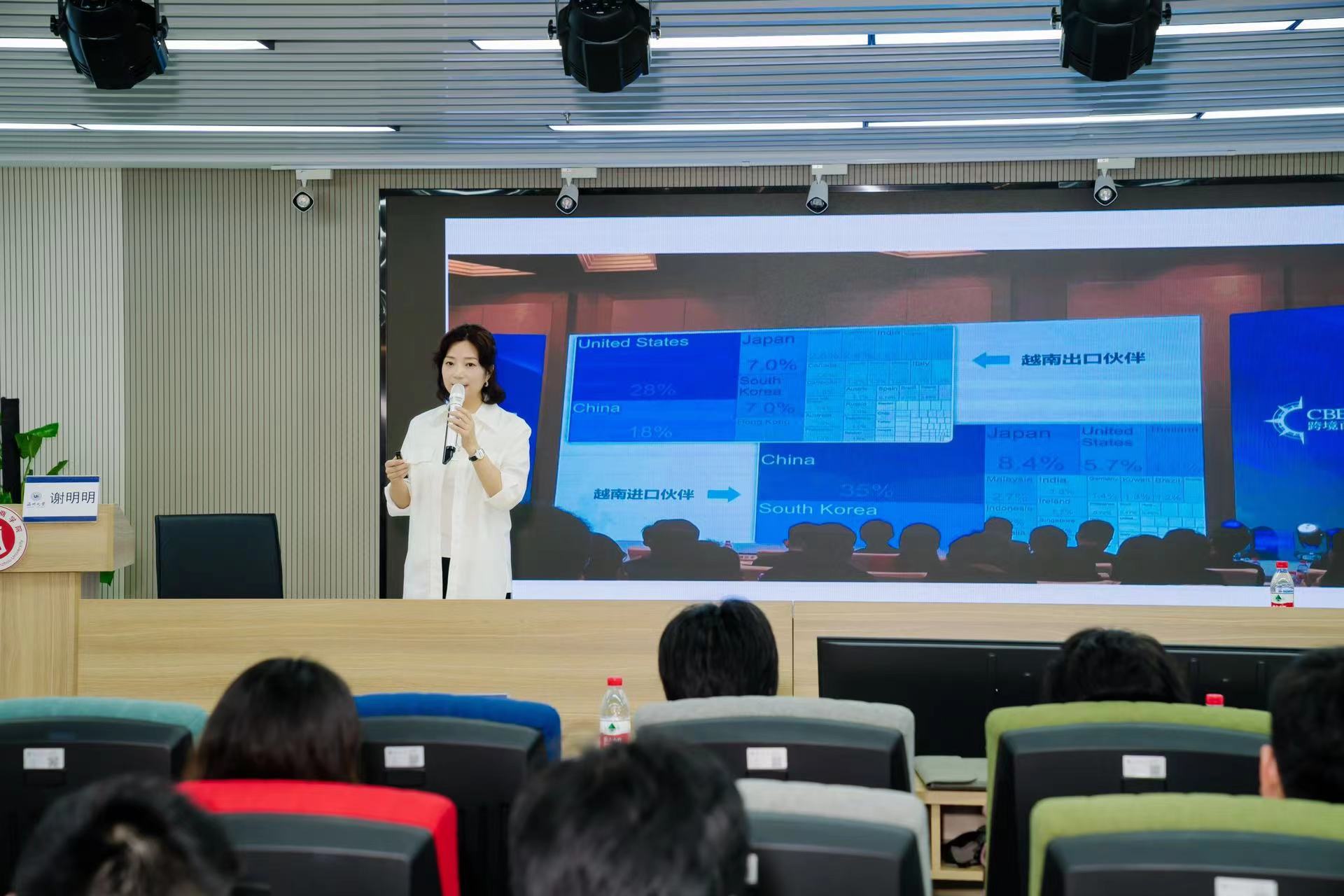 作为一名从业25年,见证了中国外贸发展史的一线人员,她结合大量实际案例和数据,向国贸师生介绍中国外贸的现状和未来的发展前景,给大家带来很多最新的行业资讯,鼓励同学们学习AI工具,跟上时代发展的变化。