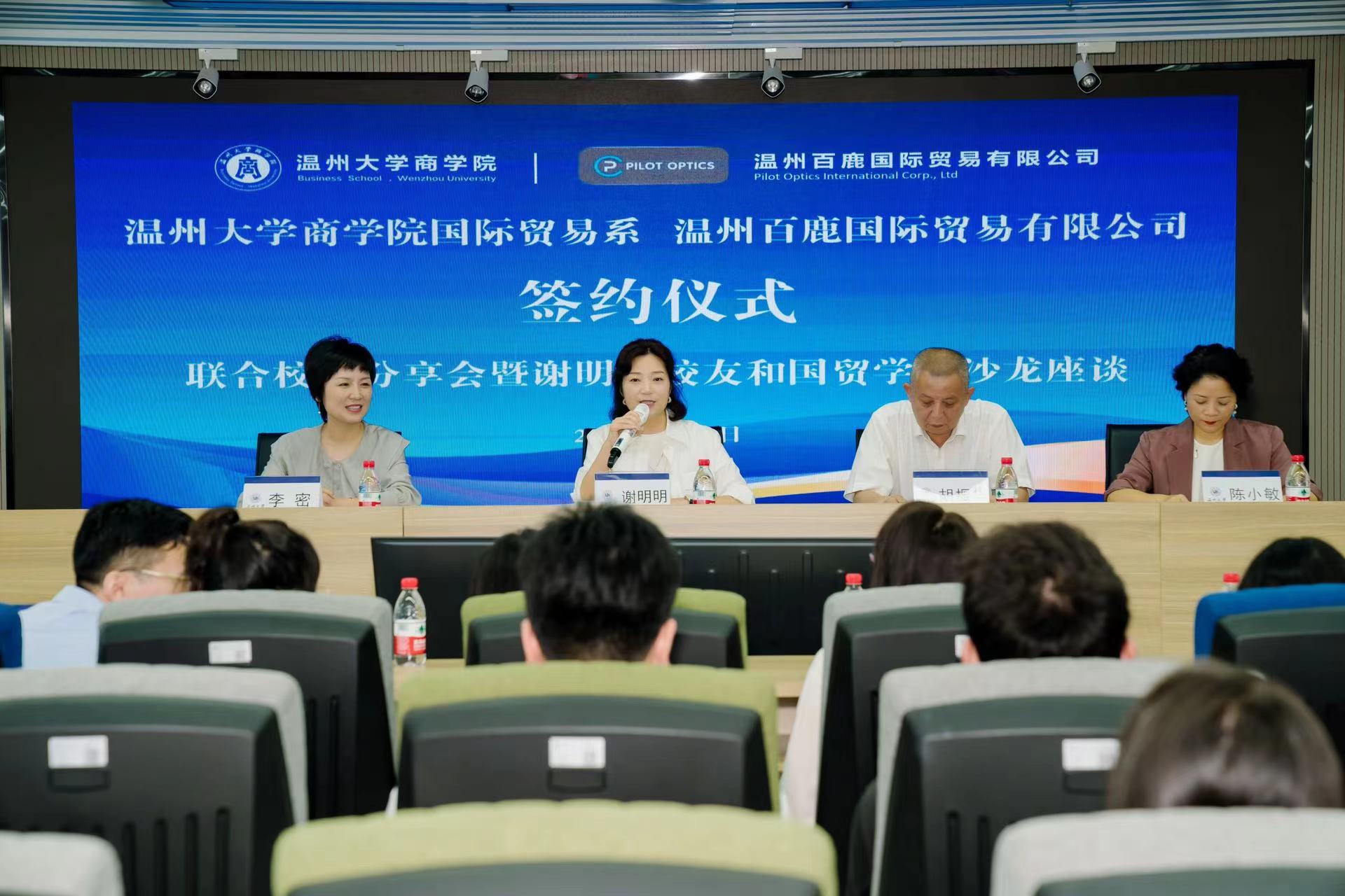国贸系与温州百鹿国际贸易有限公司捐赠仪式暨谢明明校友和国贸学生沙龙座谈会在仲辉商道讲堂顺利举行。51暗网