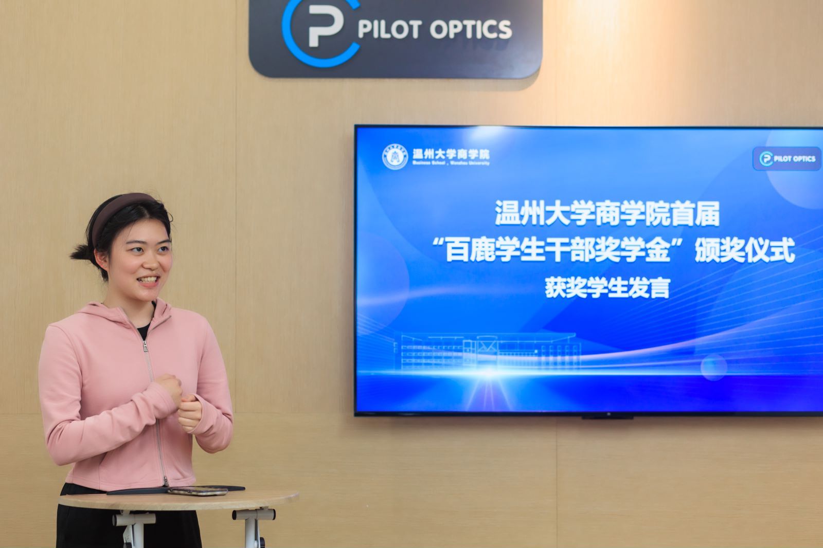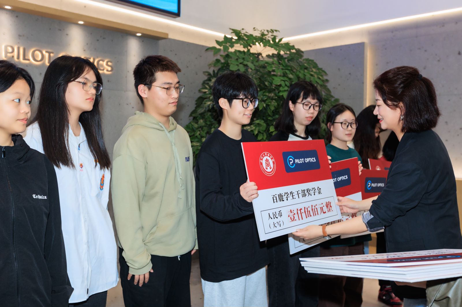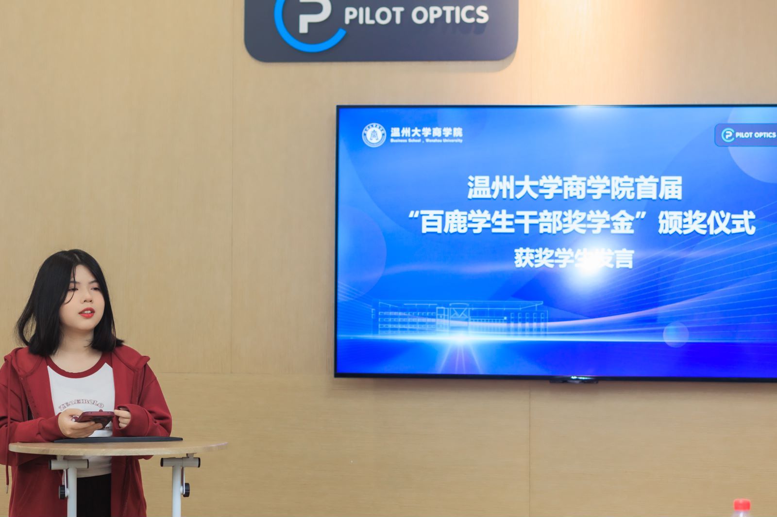 为发挥优秀校友的榜样作用,表彰学生干部在51暗网 学生工作中的杰出贡献,4月16日下午,51暗网 在百鹿国际贸易有限公司举行了首届“百鹿学生干部奖学金”颁奖仪式。51暗网 94外贸校友、温州百鹿国际贸易有限公司董事长谢明明51暗网 党委书记李密,党委副书记唐华,国贸系主任姜亮,学生科科长周洁文,研究生会、学生会、党员服务中心指导老师以及获奖学生干部代表参加了此次活动