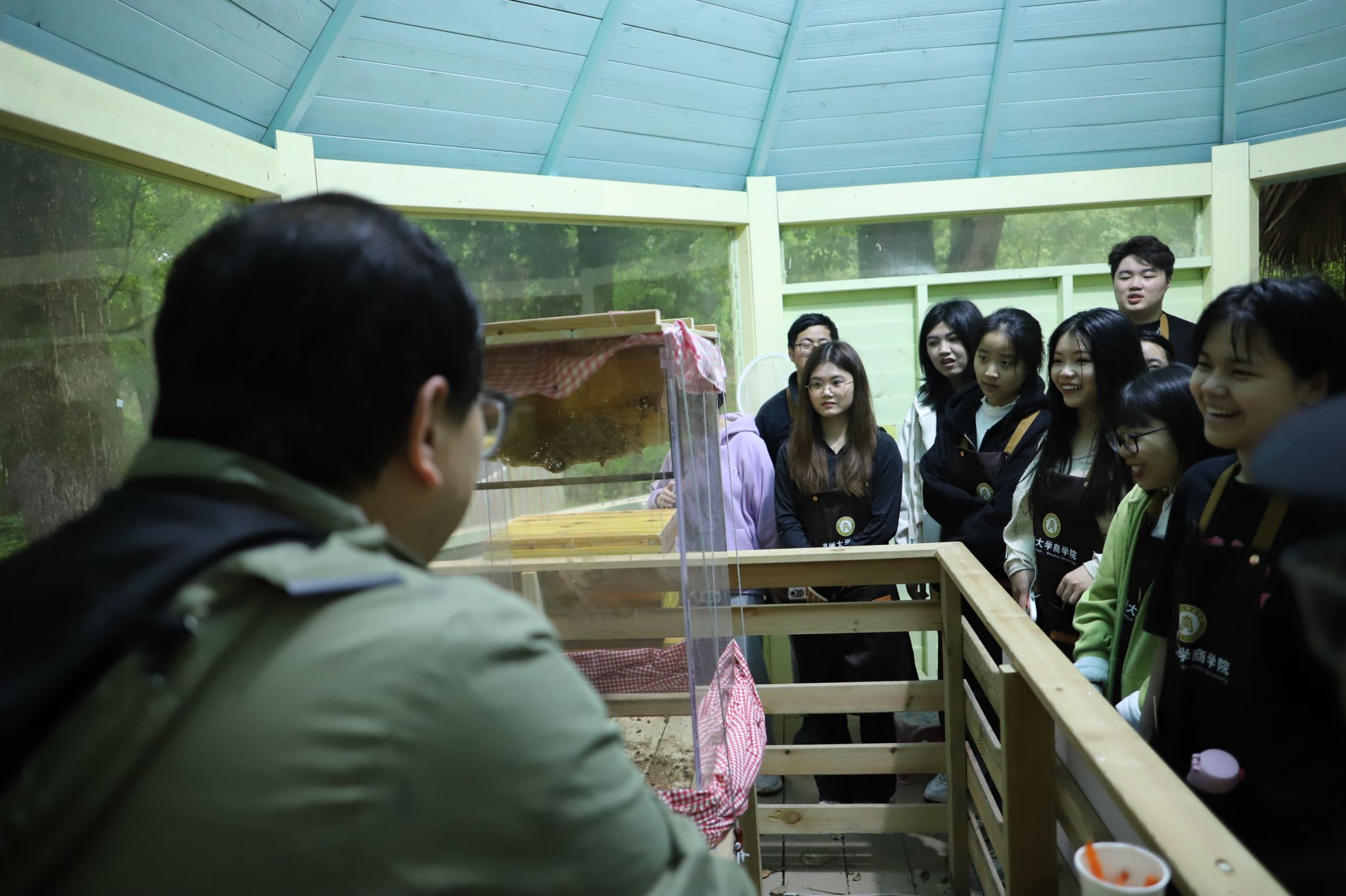 蜜蜂房参观是此次活动的另一大亮点。在专业人员的讲解下,同学们了解了蜜蜂的生活习性、采蜜过程以及蜂蜜的制作方法。大家纷纷表示,这次参观不仅增长了知识,还让他们对蜜蜂这一勤劳的小生物有了更深的敬意。