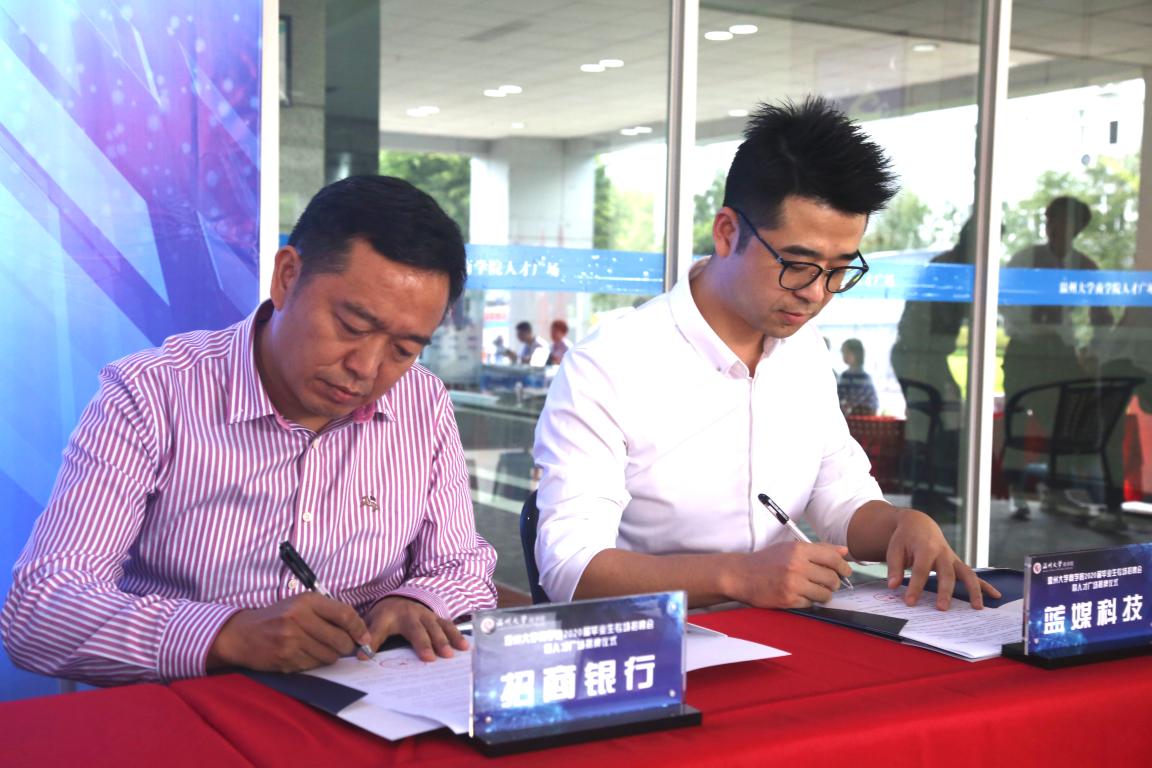 所设四个专业对口的合作单位代表签约:金融工程专业-招商银行温州分行,财务管理专业-中博教育浙江分公司,国际贸易专业-宁波锦灏集团,市场营销专业-院友企业蓝媒科技。