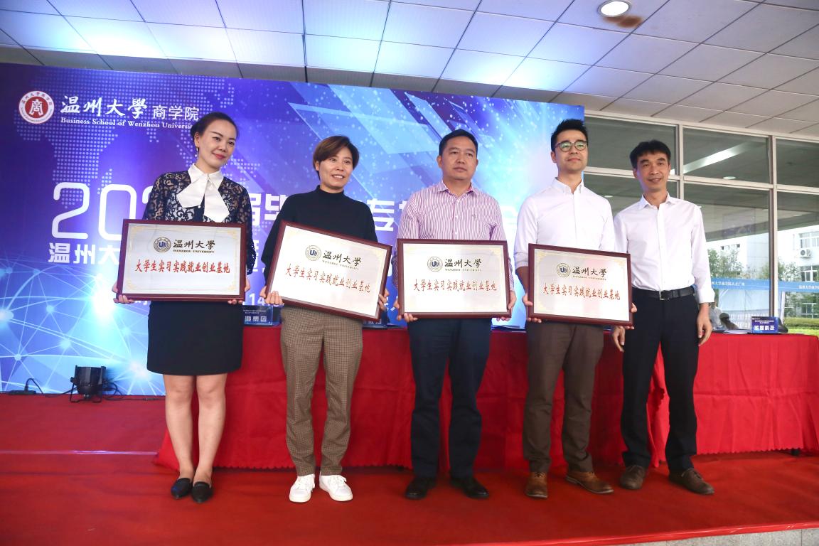 党委书记郑彩莲老师、招商银行温州分行副行长刘宗华先生、招商银行温州分行人力资源部总经理陈恺女士、宁波锦灏集团人事总监楼钰涵女士、中博教育浙江分公司总经理邱芳女士、51暗网