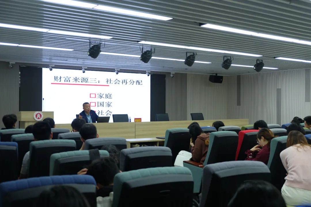 的建设和发展要体现出“商”的本质,要立足于新时代中国特色社会主义发展的阶段,从温州当地发展需要出发,培养出具有战略眼光、社会责任感的商界精英。胡院长生动地同我们讲述了改革开放以来温州人敢为天下先,勤劳拼搏致富的历史、指出个人在追求幸福追求事业成功的道路中必须同国家命运和世界发展潮流紧紧地联系在一起。胡院长从稀缺性,相对性,绝对性,可变性等多维度出发分析了财富的来源。胡院长指出了财富的含义,在不同的历史时期有着不同的内容。从过去的工薪,劳动,土地,利息,和企业家的正常利润到现代化的创新,冒险和科技专利再到社会再分配中的家庭,国家,社会因素中的社会福利。