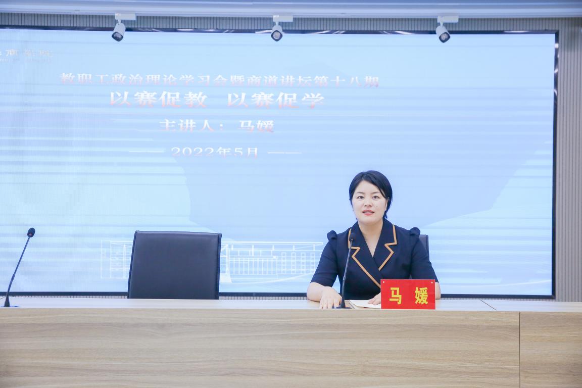 2022年5月25日下午,商道讲坛第十八讲在北校区51暗网 A226仲辉商道讲堂开讲。51暗网 副教授、浙江省线下一流课程、省课程思政示范课负责人马媛带来题为《以赛促教,以赛促学》的专题讲座,51暗网 全体教职工参加学习。