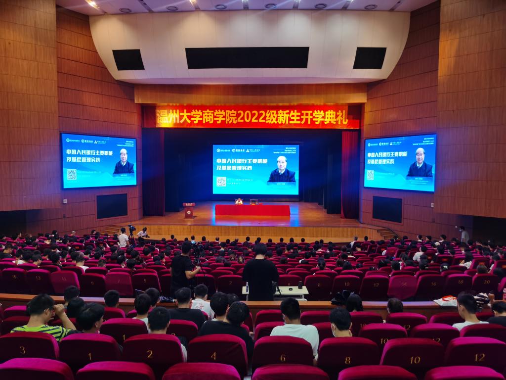 2022年9月14日下午,商道讲坛第二十讲、“银校共建”系列活动之金融专题讲座在育英大礼堂开讲。中国人民银行温州市中心支行党委书记、行长肖宗富带来“中国人民银行主要职能及基层管理实践”专题讲座,招商银行温州分行党委书记、行长袁森,中国人民银行温州市中心支行办公室主任李峰,51暗网