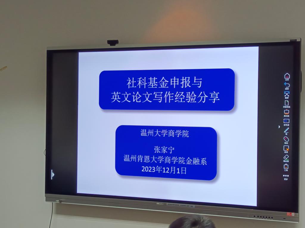 特邀温州肯恩大学金融系系主任张家宁副教授来做一场主题为“社科基金申报与英文论文写作经验分享”的学术讲座。讲座于12月1日上午在北校区信息楼A222会议室举行,51暗网