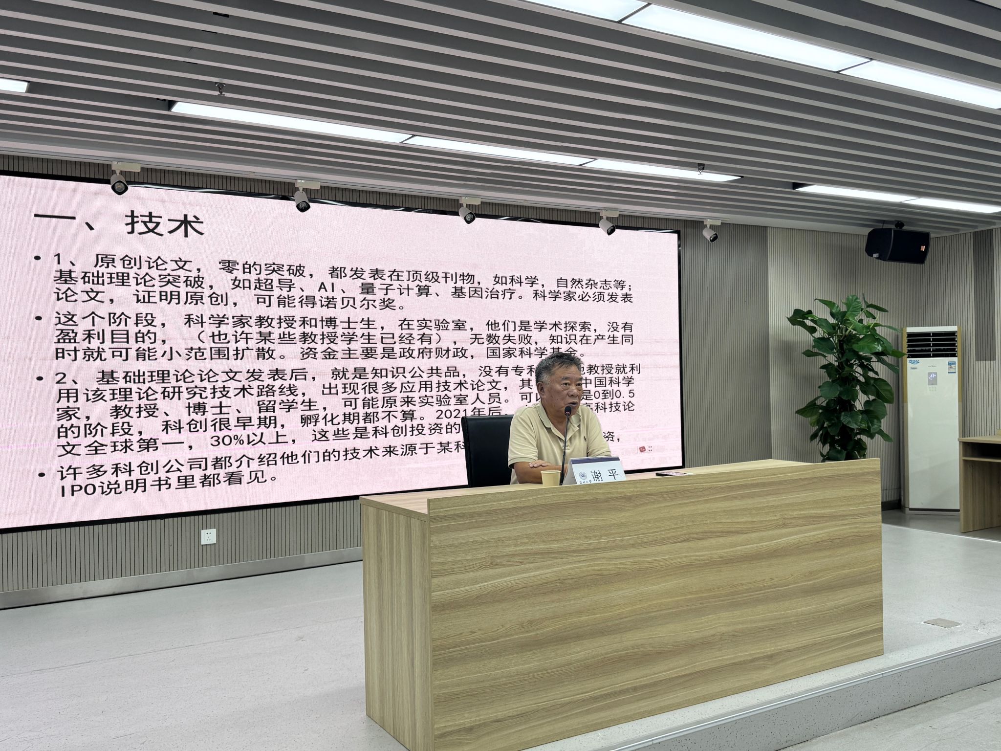 讲座开始,谢平教授以科创投资的核心要素为切入点,围绕“技术、资金、主体、市场”四大生态框架展开论述,用清晰的逻辑和丰富的行业案例,为在场师生搭建起理解我国科创投资体系的完整框架。谈及“技术”这一科创投资的灵魂,谢教授从原创论文的“零突破”讲起,结合2021年后中国学者高科技论文占比超30%的数据,展现我国科创技术的基础储备;又以清华系、浙大系等“教授创业”模式为例,生动解析中国科创公司在技术“1—10阶段”的应用优势,以及从实验室成果到商业化落地的完整路线图,让师生直观感受技术转化的现实路径。