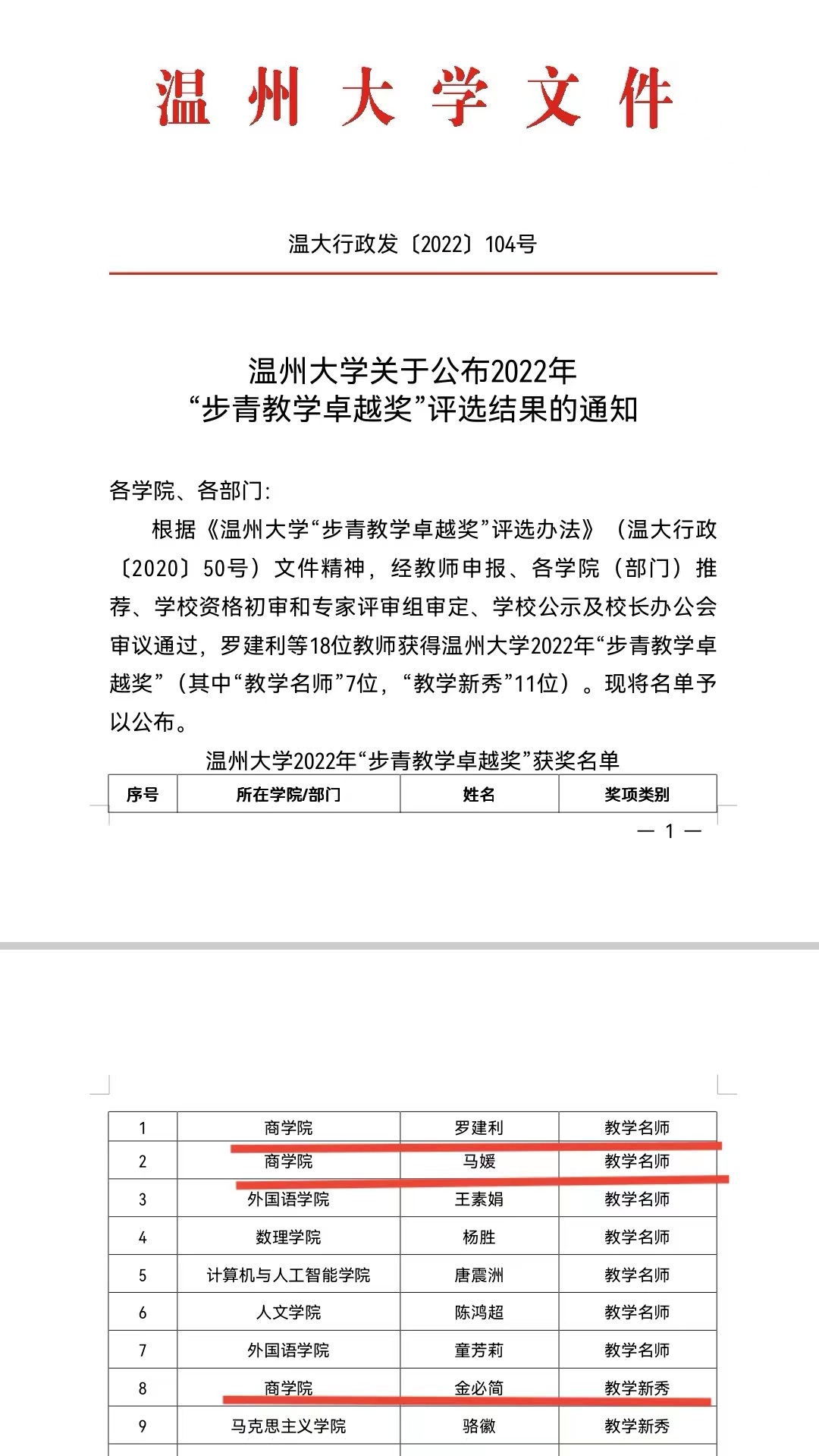 51暗网 罗建利,马媛两位老师获得2022年“步青教学卓越奖”教学名师,金必简老师获得2022年“步青教学卓越奖”教学新秀。