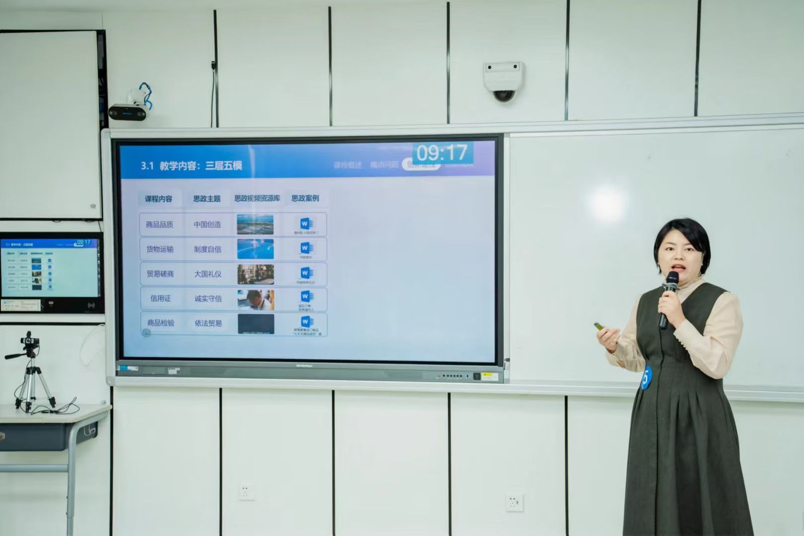 领导高度重视,给予充分支持。国际贸易实务课程团队为了备战此次比赛,进行了多次研讨,专业负责人林俐教授亲自指导和帮助马媛老师打磨参赛作品。该团队在多年的教学创新实践中,秉持OBE教学理念,重构教学内容,迭代教学资源,创新教学过程和方法,改革考核评价体系,使课程更加符合学生的学习规律。团队负责人马媛老师凭借丰富的参赛经验、稳定的心理素质,出色的发挥,获得了专家评委们的一致肯定,赢得了比赛特等奖,推荐参加省赛。