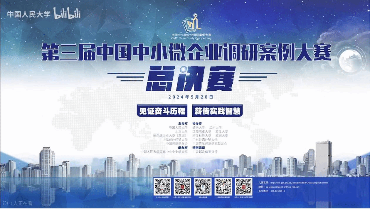 2024年5月10日,第三届中国中小微企业调研案例大赛在线上落下帷幕。大赛由中国人民大学、北京大学、哈尔滨工业大学(深圳)等主办,暨南大学等协办,中国人民大学国家中小企业研究院承办,旨在鼓励高校学生通过实地调研,发掘转型背景下中国中小微企业发展的代表性案例,融汇理论知识与企业实践,推进面向真实世界的经济与管理研究。